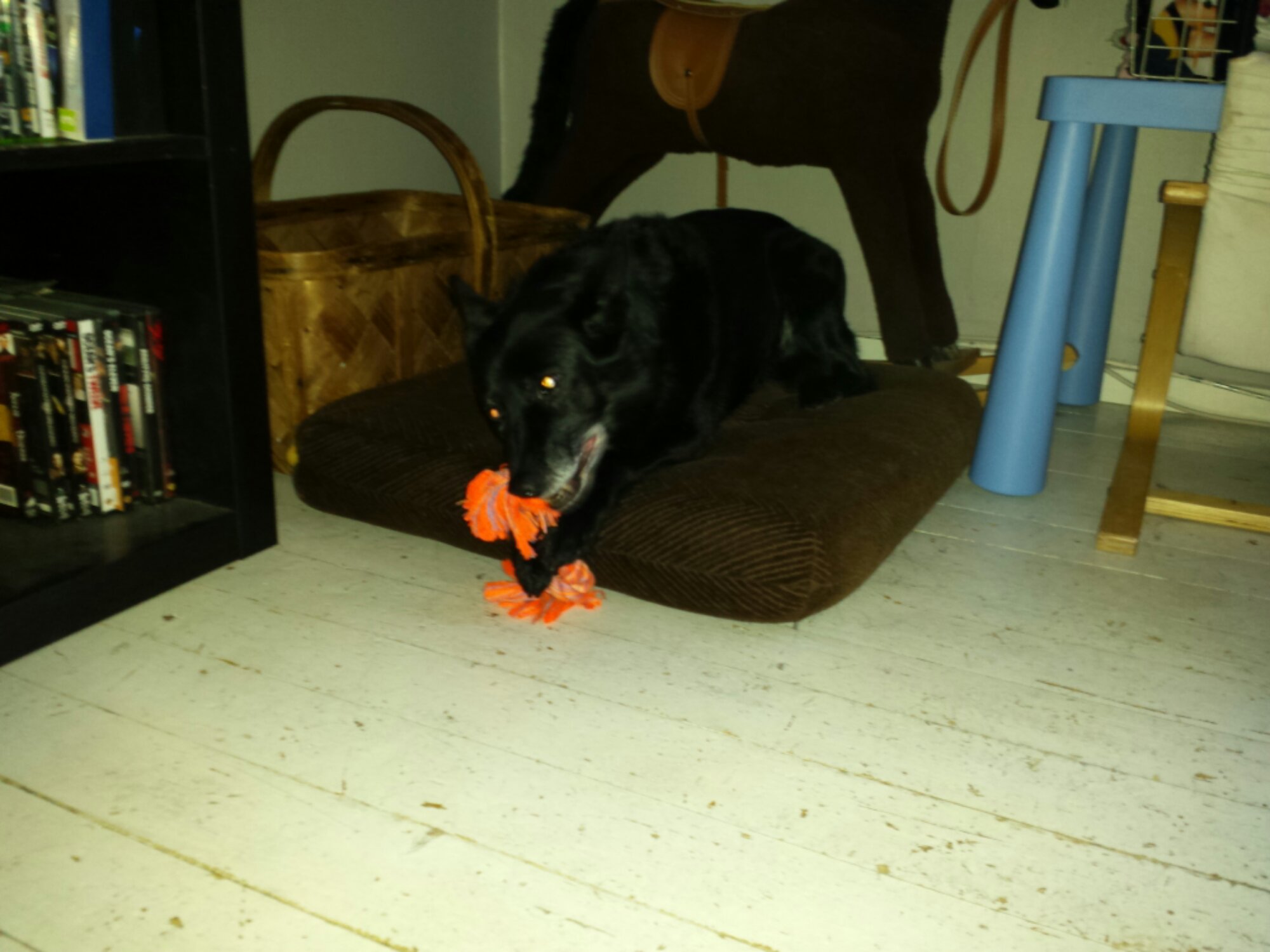 Bustanten Varga firar Lucia genom att bita sönder en leksak