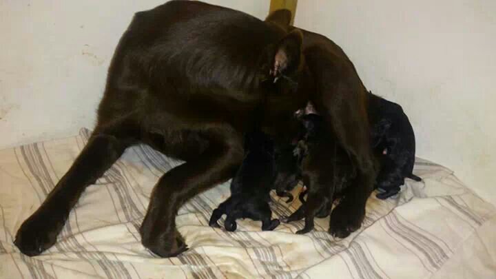 Idag födde Riva sina valpar, 6+2, svarta och bruna på 1 timme och 45 min.