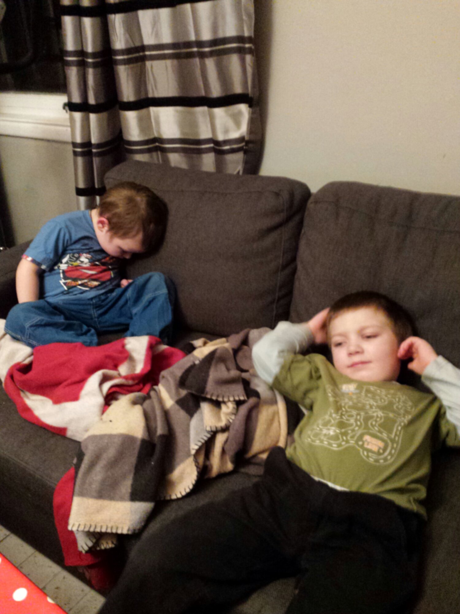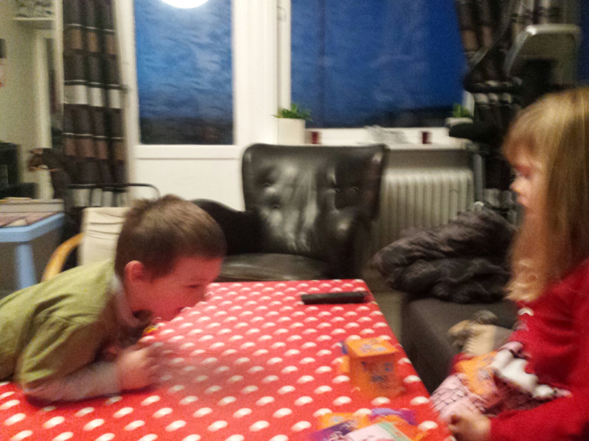 Dagen började med morgonmys och lite presenter. Flygplan, lego, åkmadrass och åktefat.