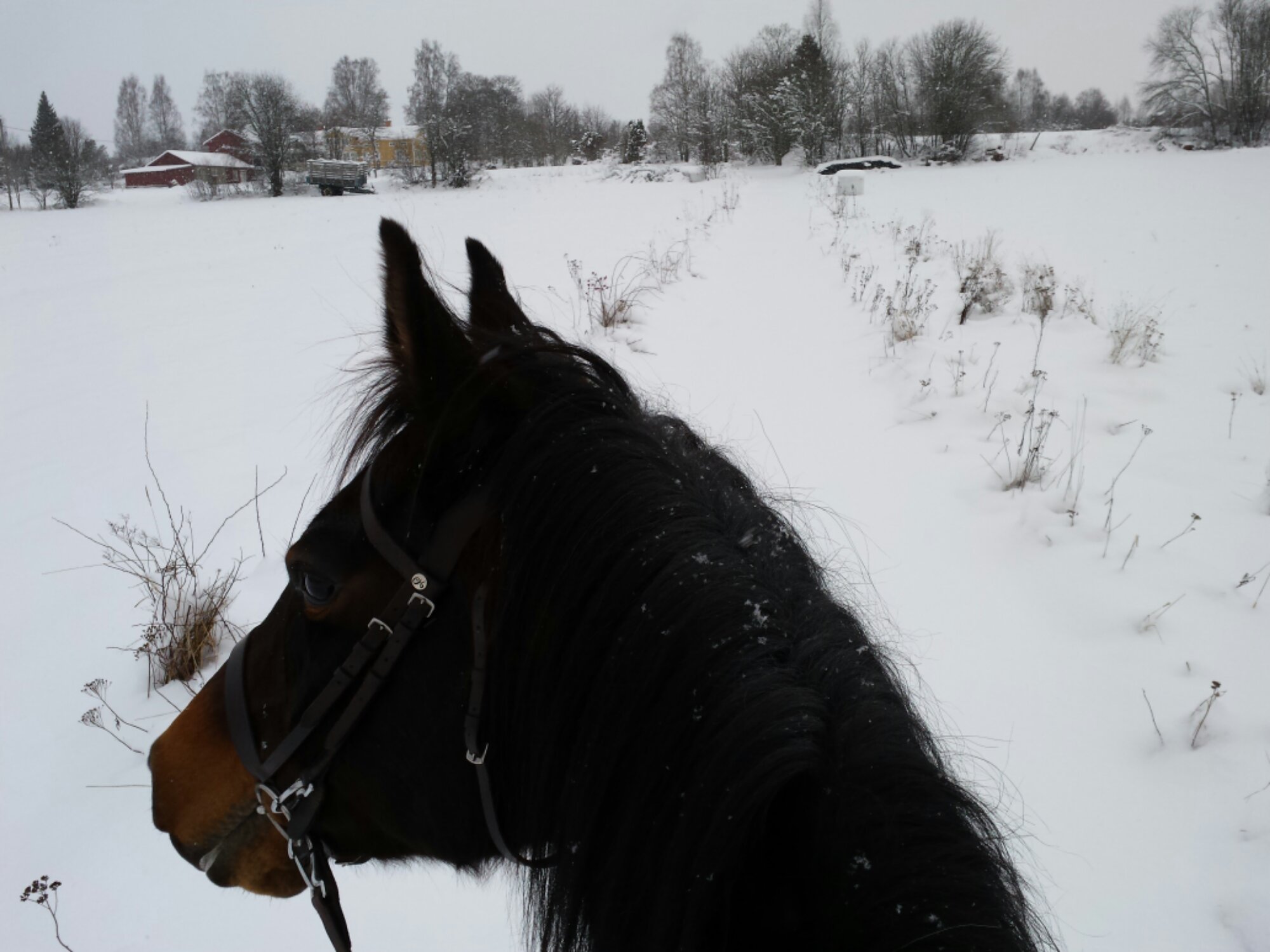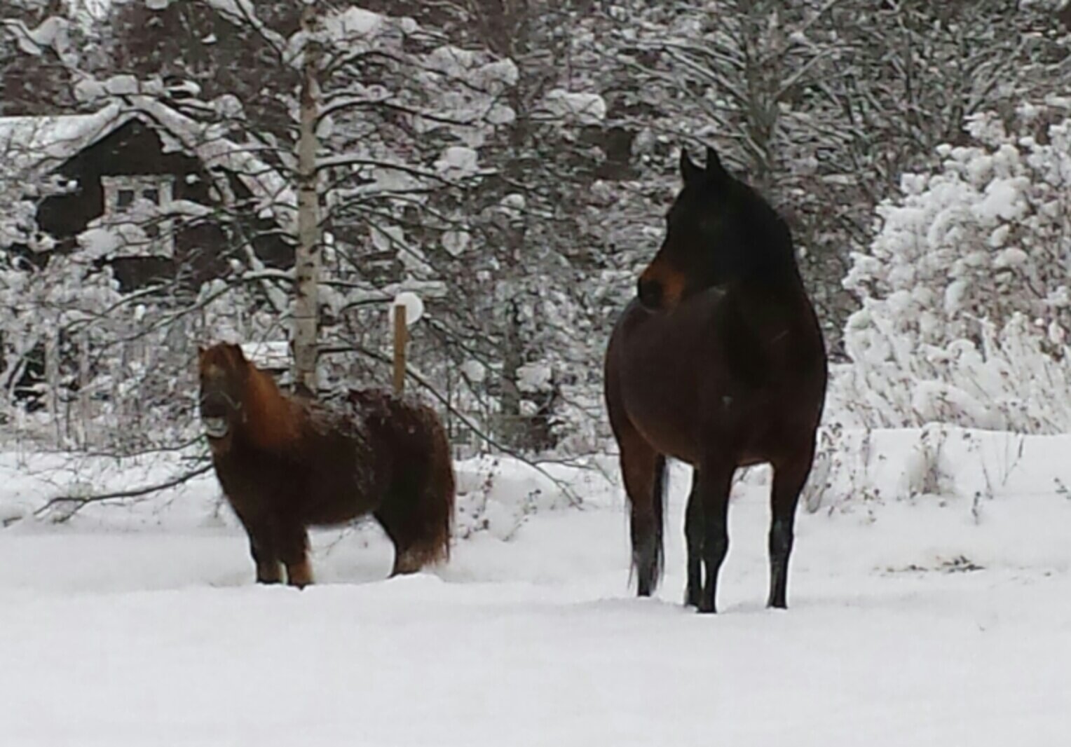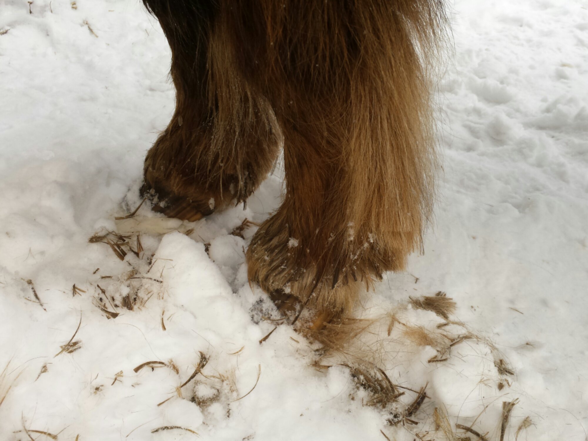 Idag har Kalle fått hovskägget trimmat, han har så mycket att han nästan går på det och snön fastnar i stora klumpar.