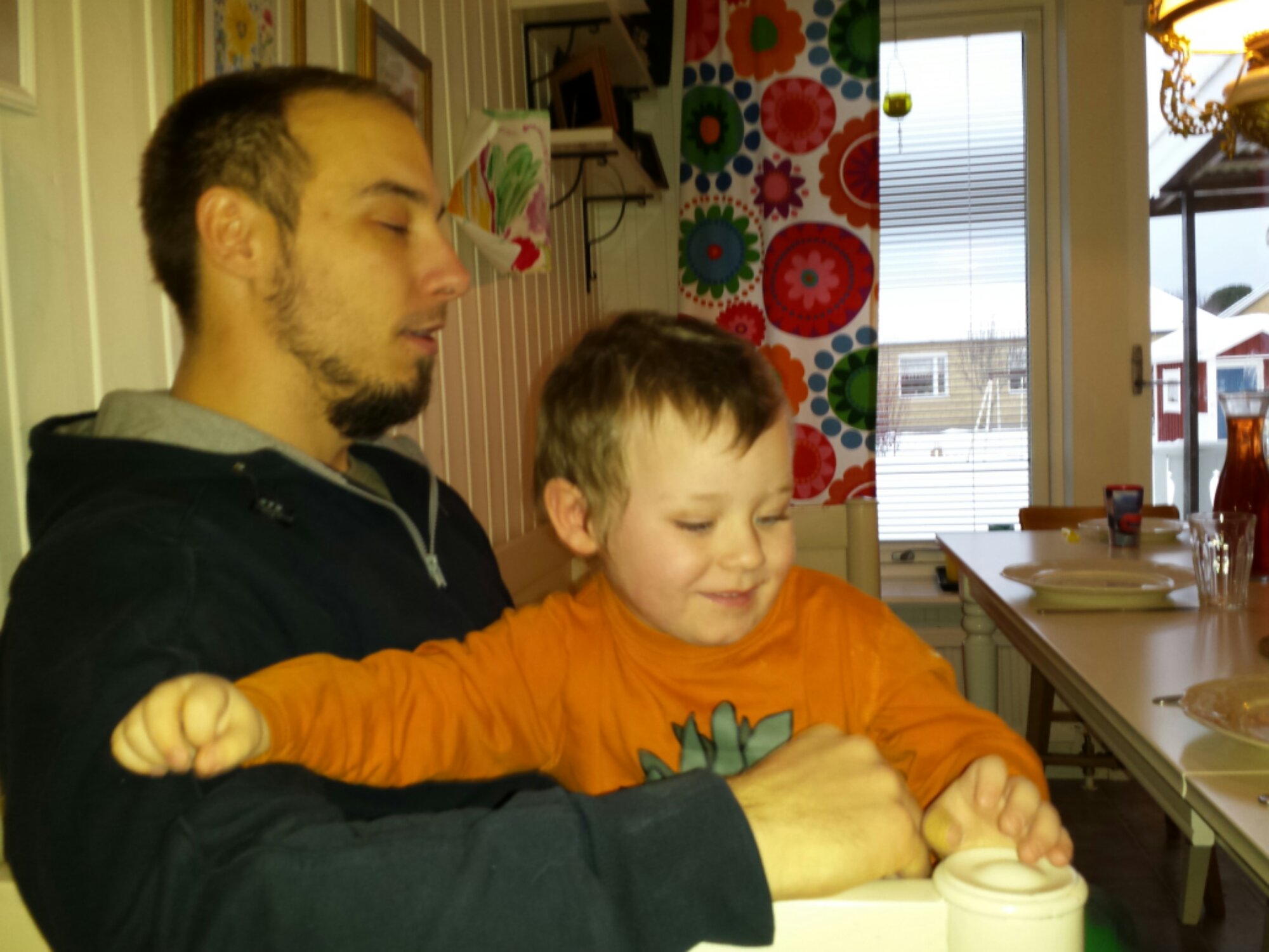 Spenderade förmiddagen hos Rebecca och småkusinerna, blev bjudna på god paj, och hade det mysigt.