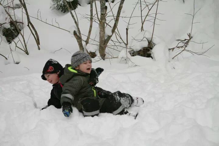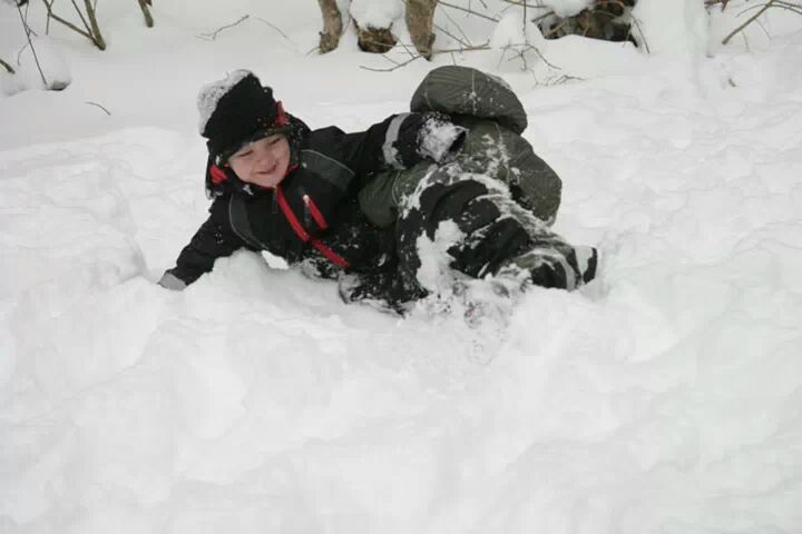 När det var färdigfotat blev det lite brottning i snön tydligen.. busgrabbar