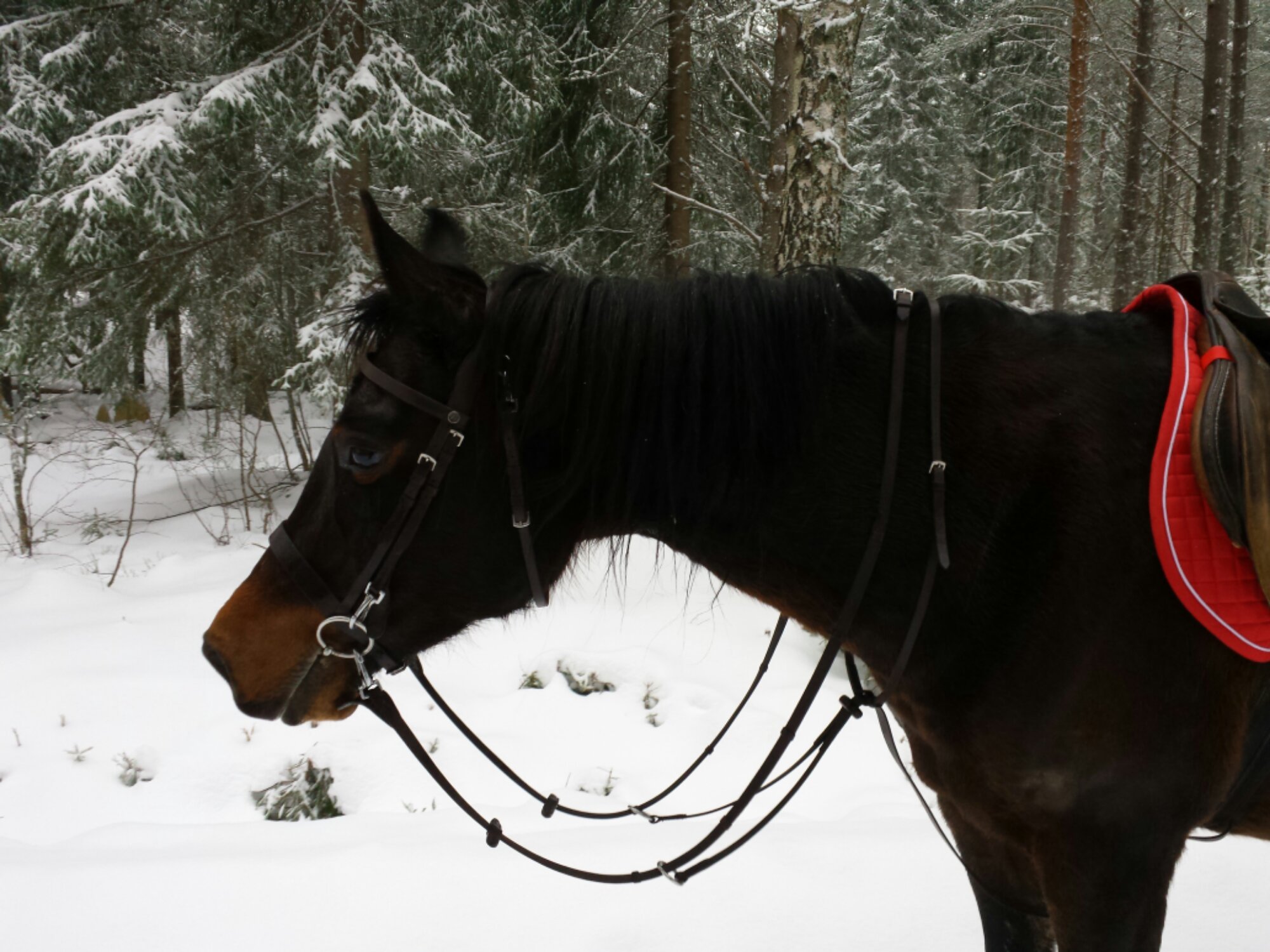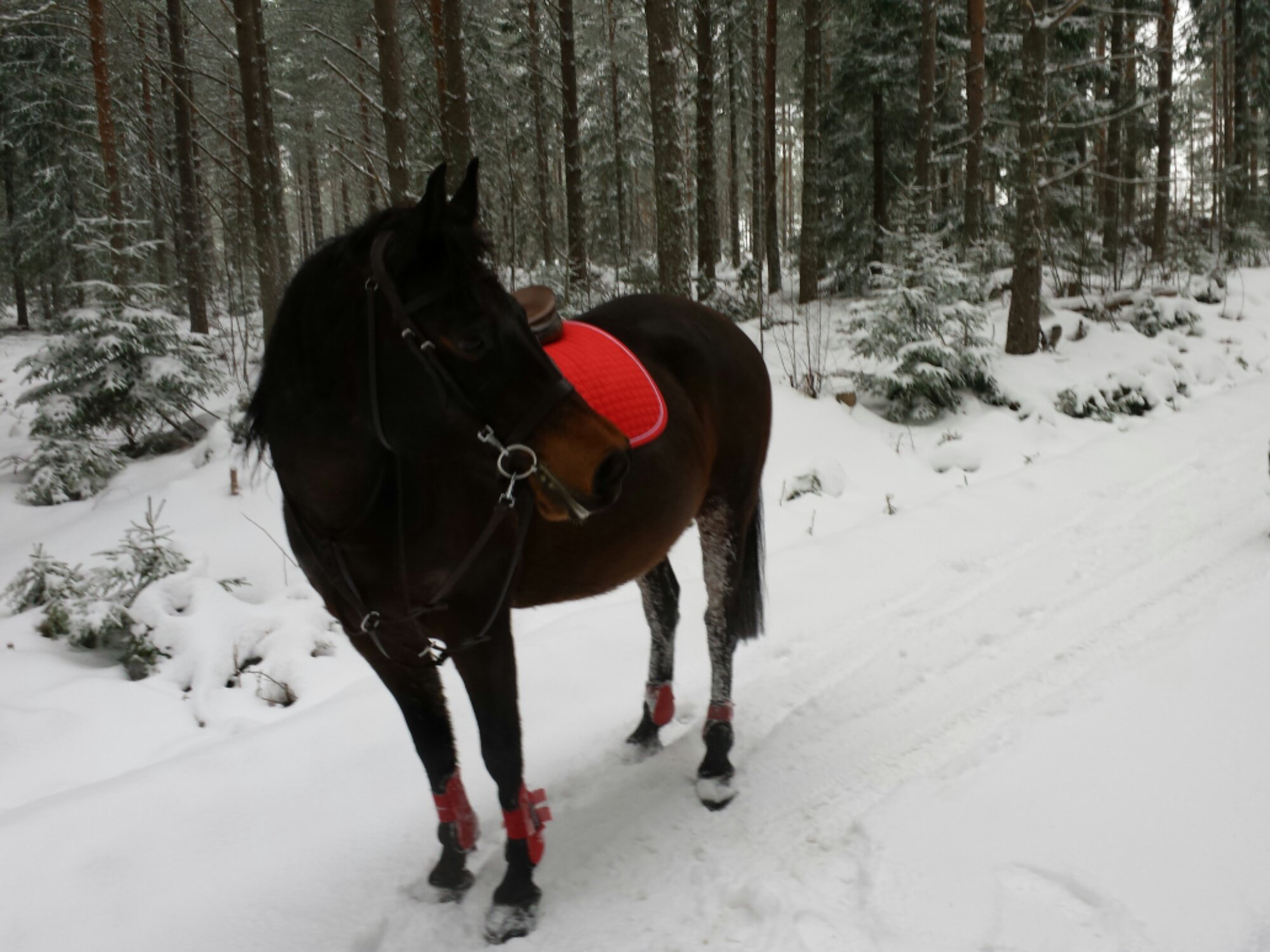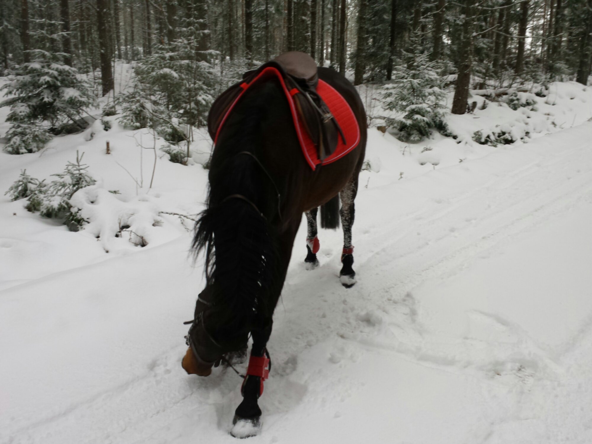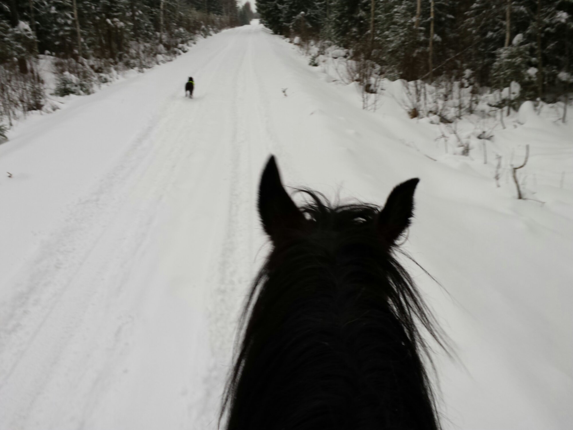 Är inte så tokig i snön, men det är mysigt att rida i den. Och Mira säger då inte nej till en fartfylld runda. Lilja hängde på hon med.