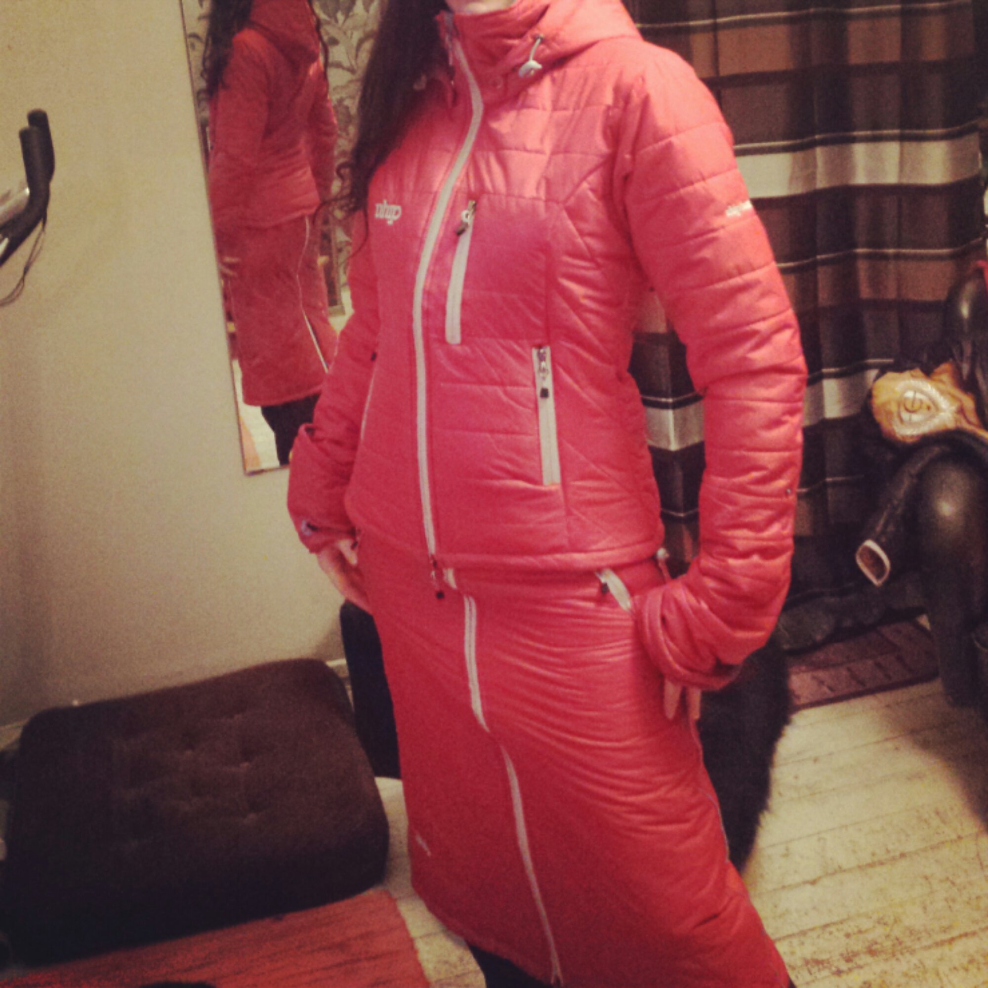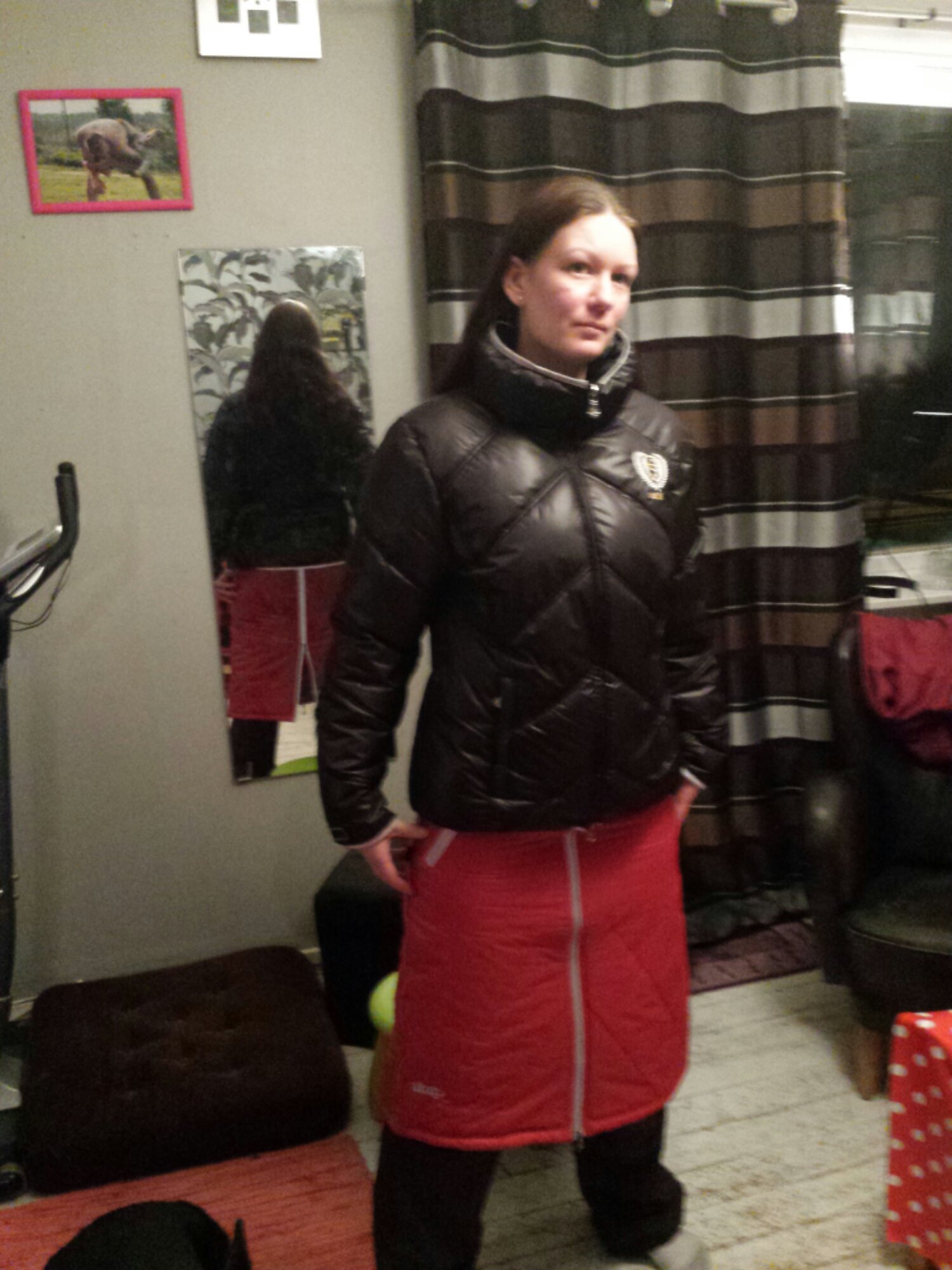 Visar upp min nya röda jacka av ridmärket uhip, så skön! Och matchar min täckkjol av samma märke.