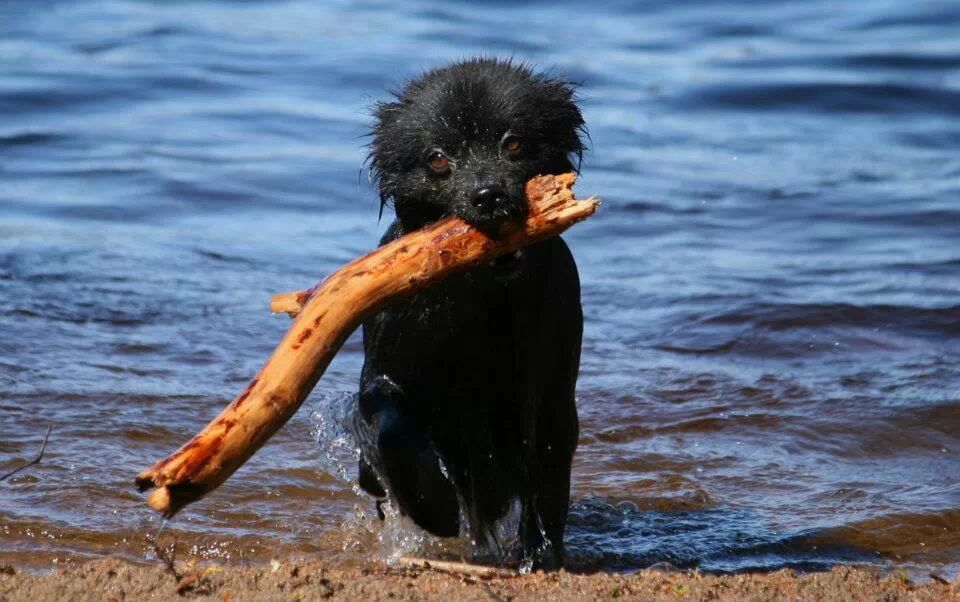 Aktiva hundar som gillar att vara med. Med föremålsintresse.
