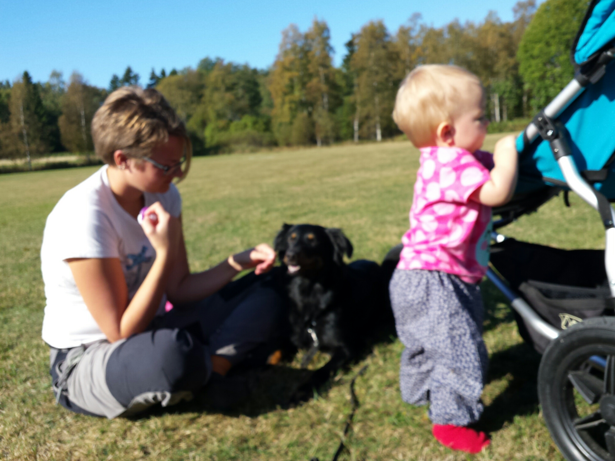 Solen sken så fint idag på klubben, Stina tränade hund och Elle kröp iväg och tog av sig strumpan så Lilja fick springa och hämta den.