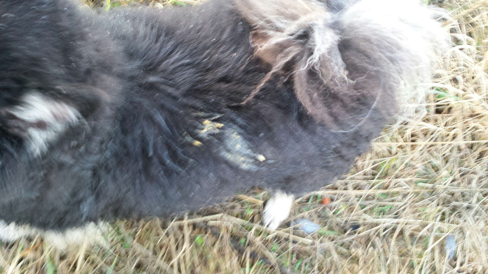 Efter promenaden fick Crut en välbehövlig duch…. Han hittade något mycket äckligt att rulla sig i.