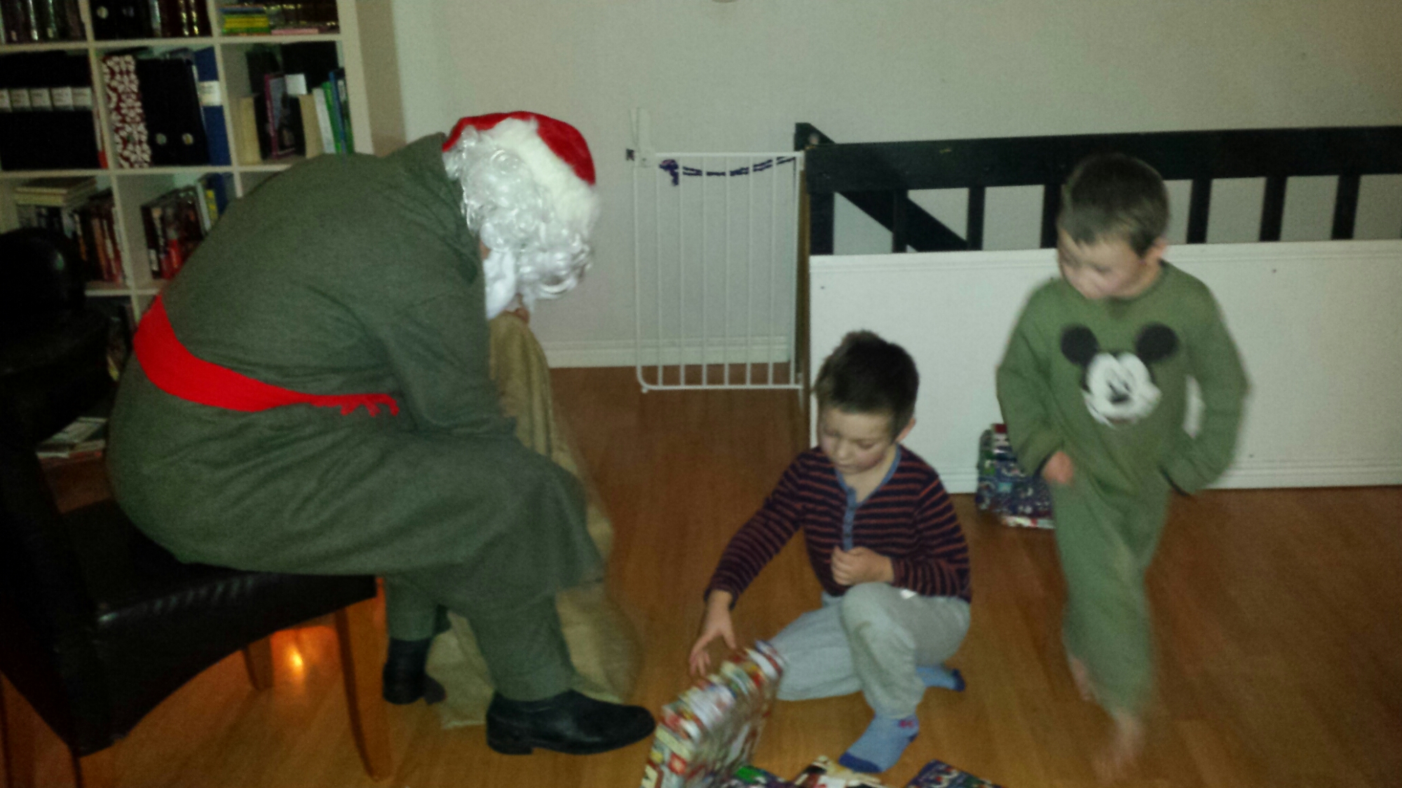 En tomte kom på besök också och pojkarna blev riktigt glada.