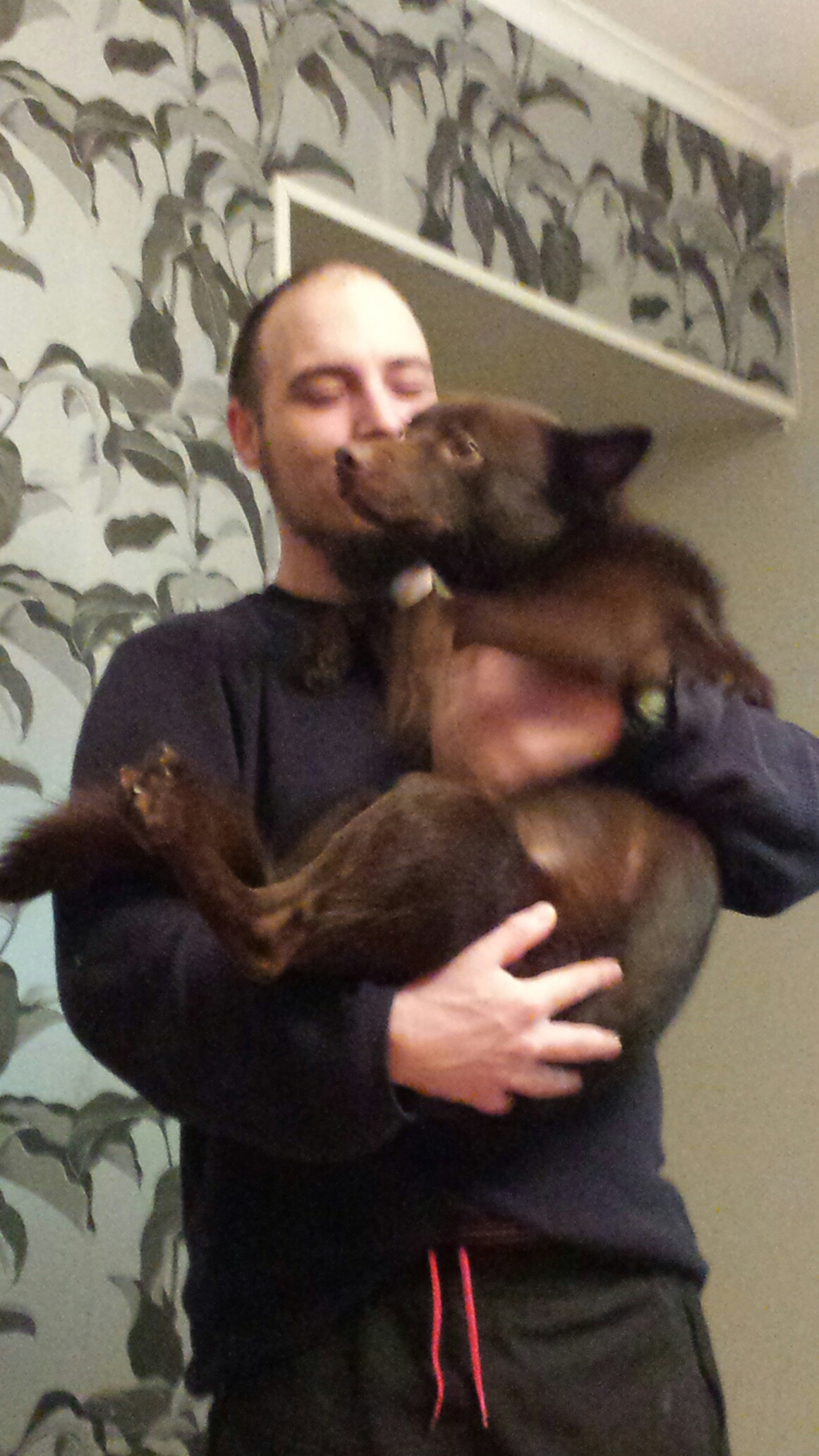 Barnen tycker han är superrolig, han tycker om att pussa på dom.