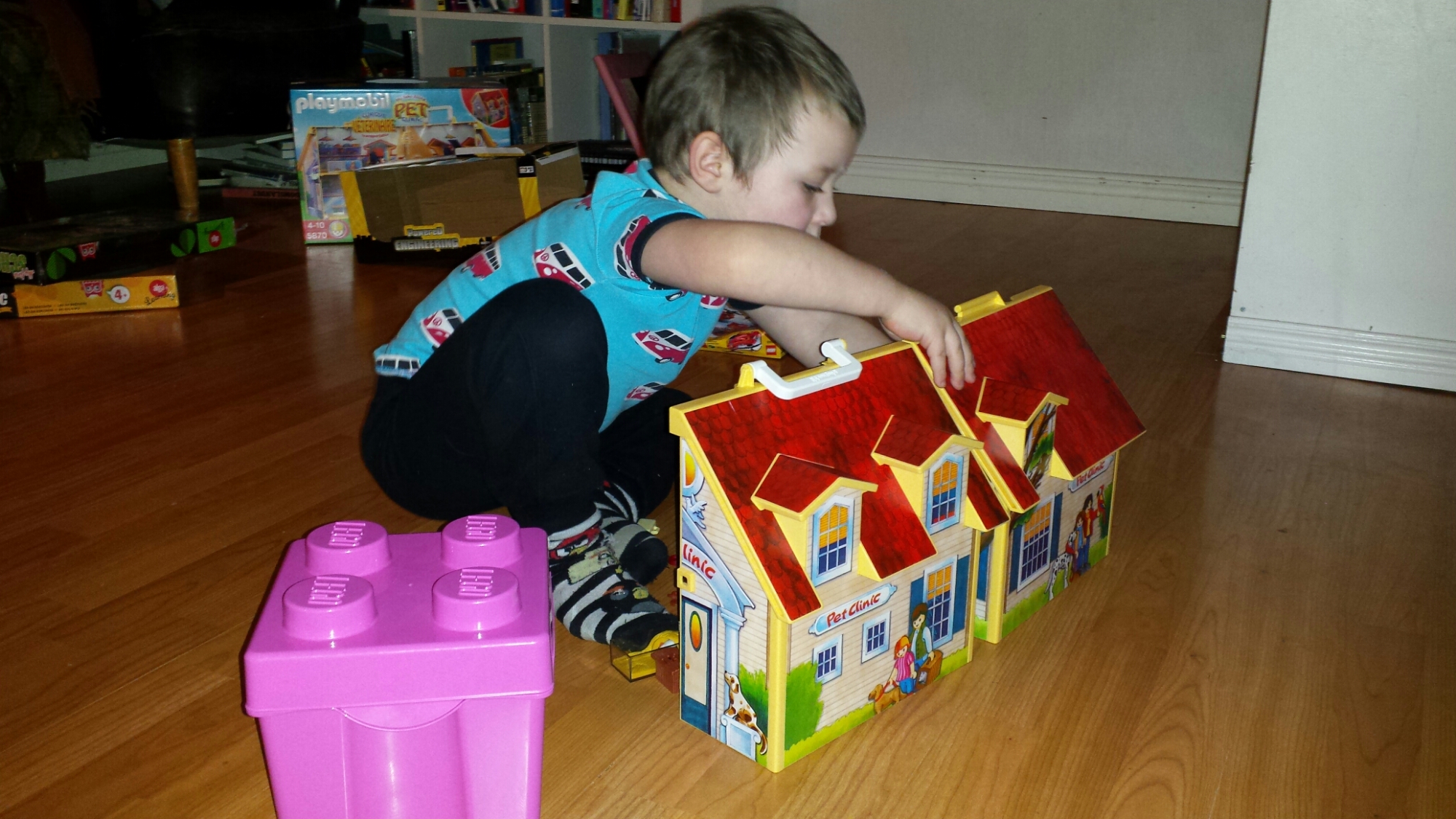 Lego, pussel, sängkläder, kläder, radiostyrd snöskoter, playmo veterinärhus, rosa vantar, bokstavsspel mm. En mycket nöjd Love somnade gott kan jag lova.