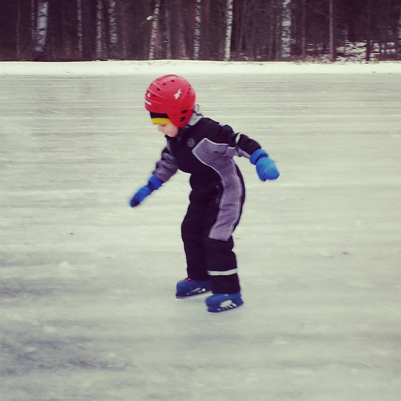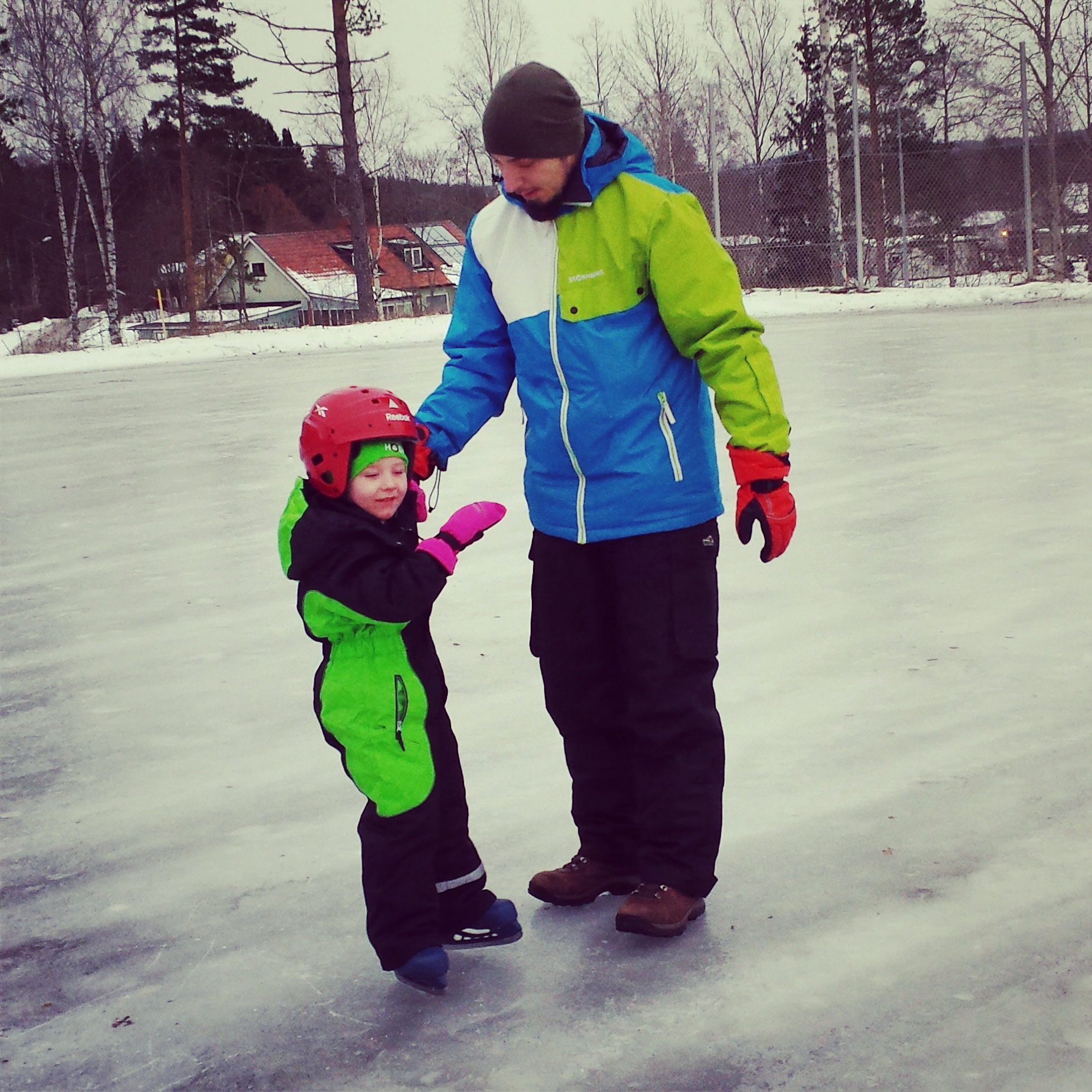 Barnen har gjort sin skridskodebut idag. Lite vingligt och några vändor på rumpan men några steg kom dom allt! Lukas snurrade även runt.