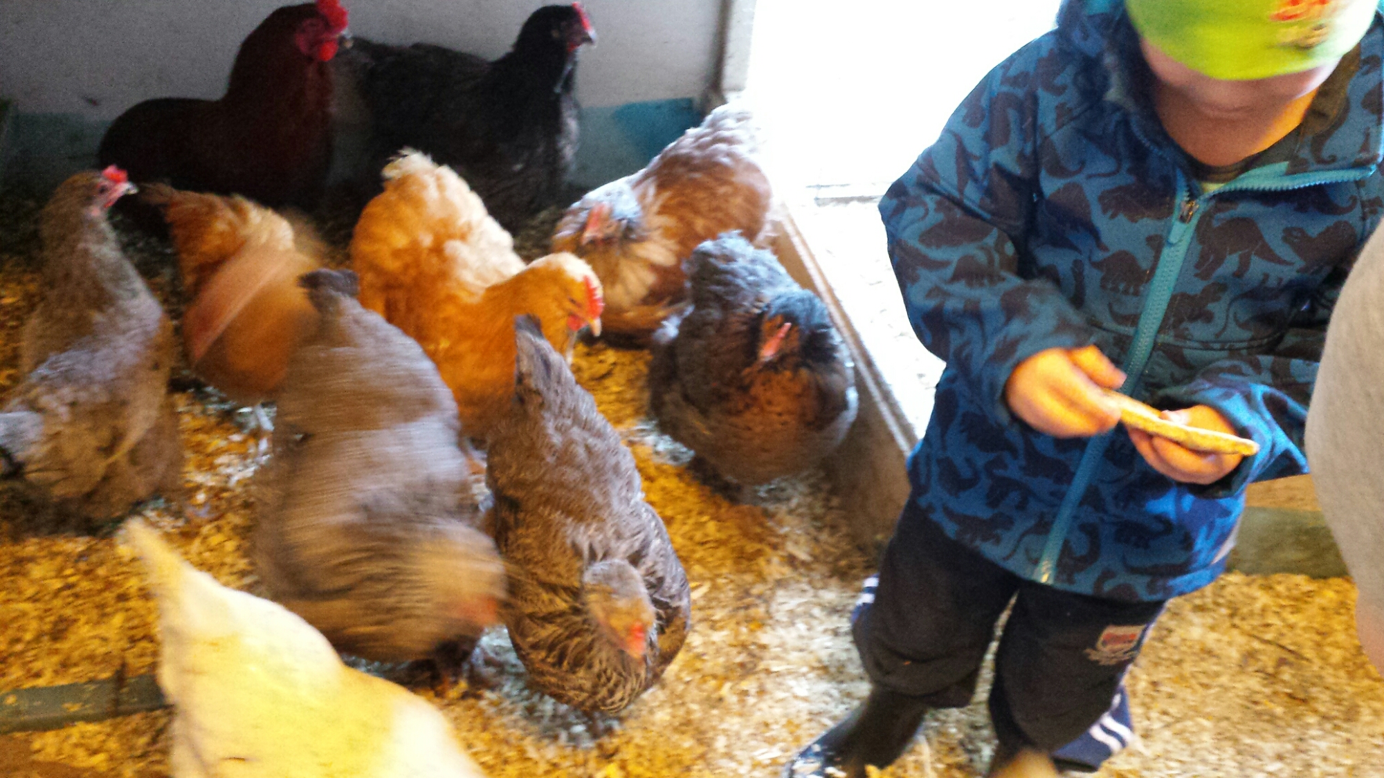 Jag och pojkarna har matat och vattnat Lisas höns, spännande tyckte dom men liite läskigt med.