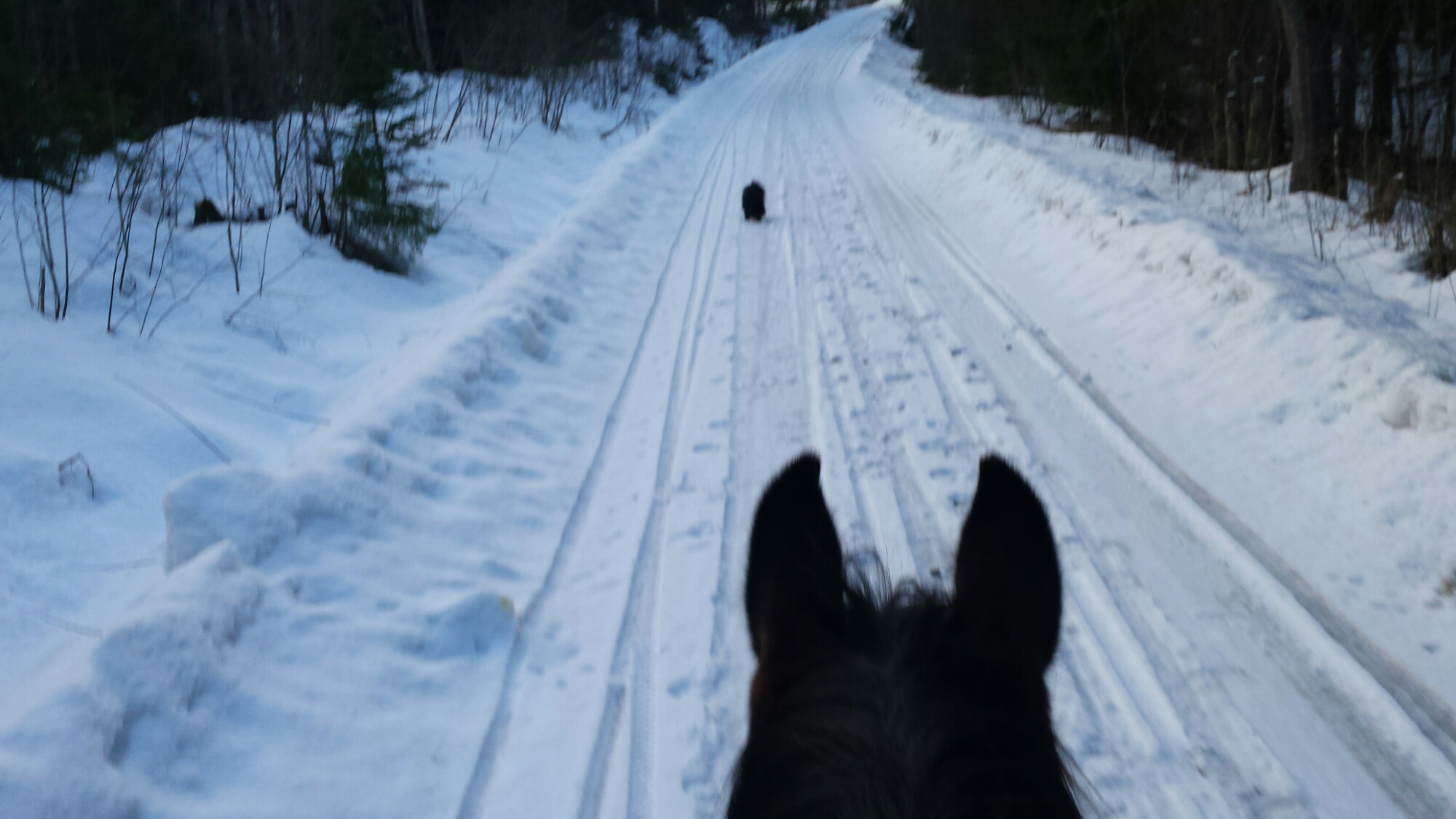 Idag fick mittelsessan följa med på ridturen, hon hittar alltid något spännande att äta .. idag var det hästbajs. Arabsessan hade mycket energi att göra av med idag 😀