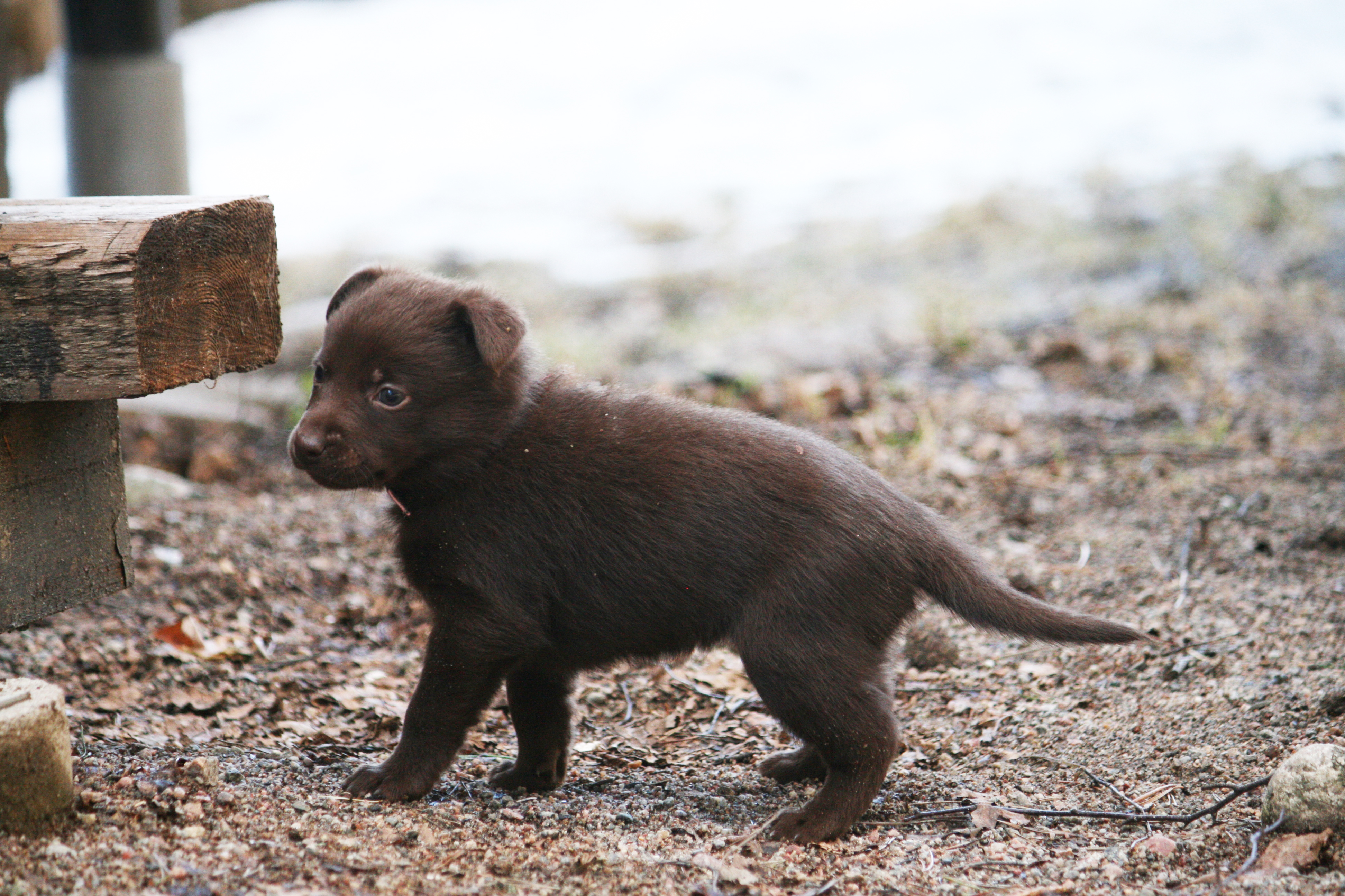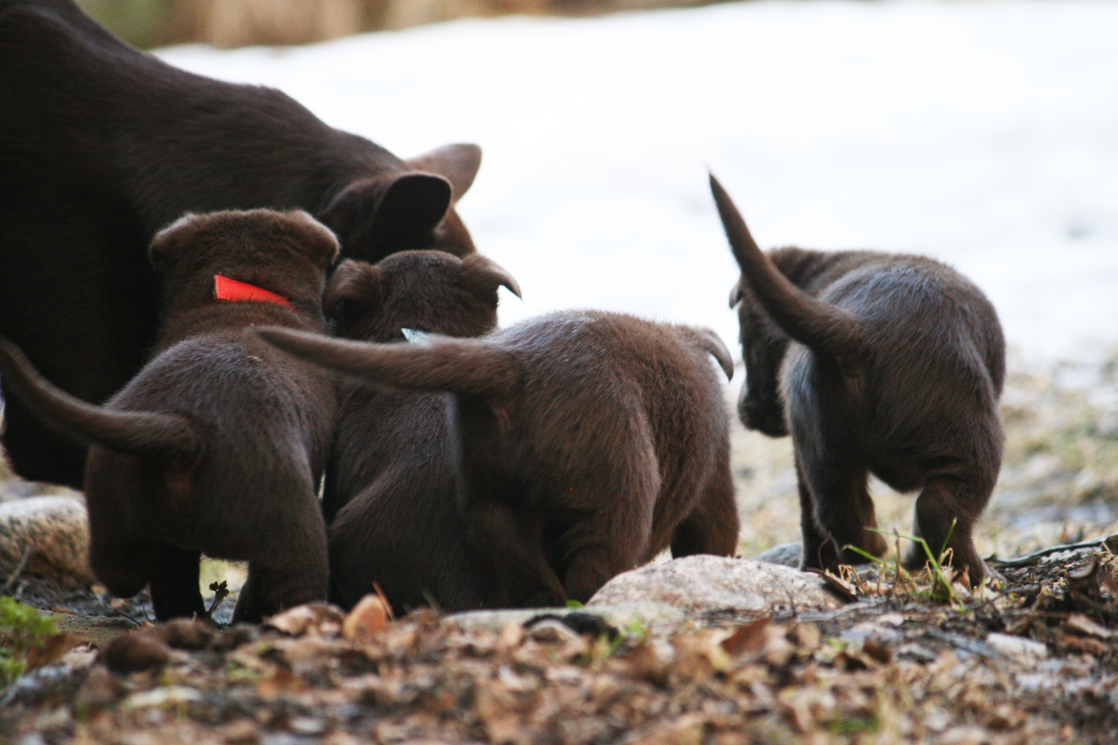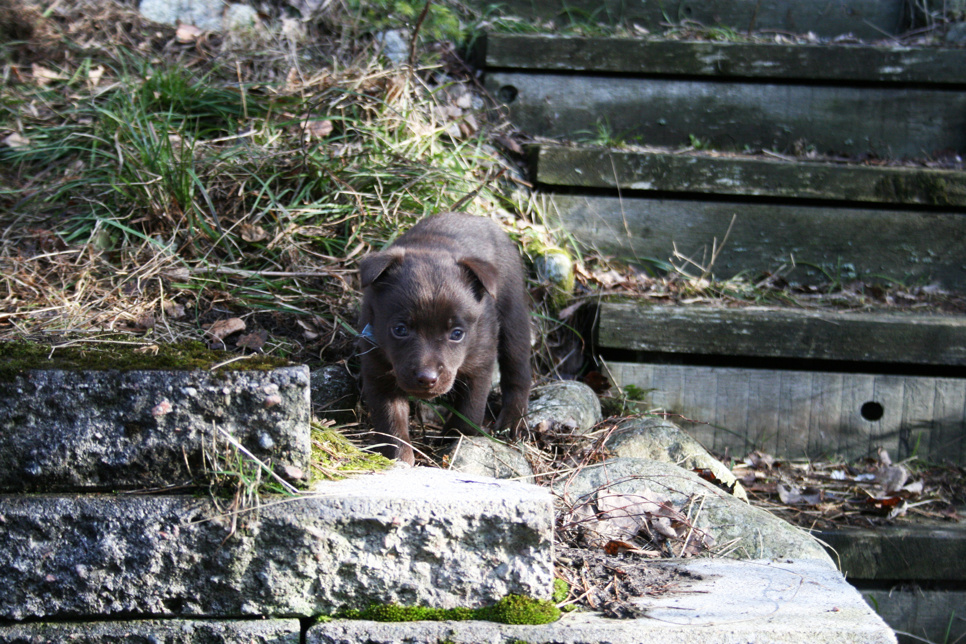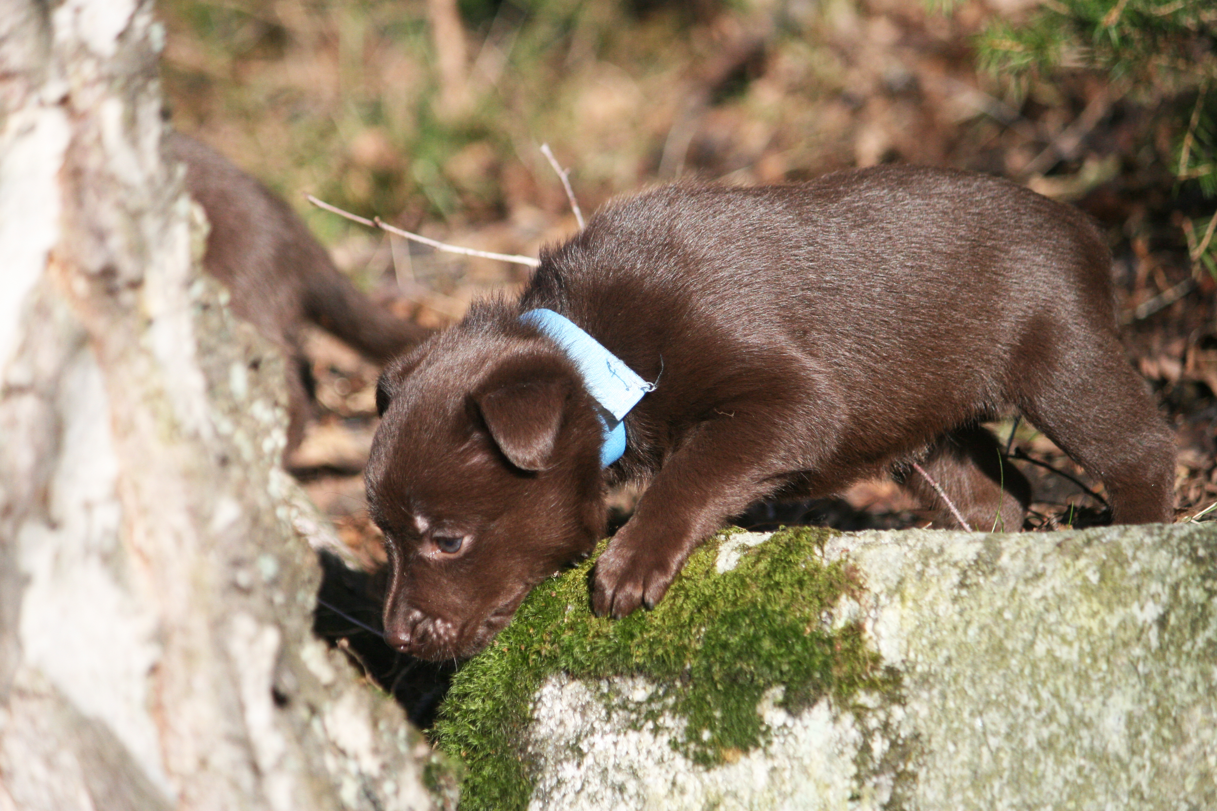 Nicke nyfiken spanar in valparna och det drar i valptarmen! Jättefina bilder!