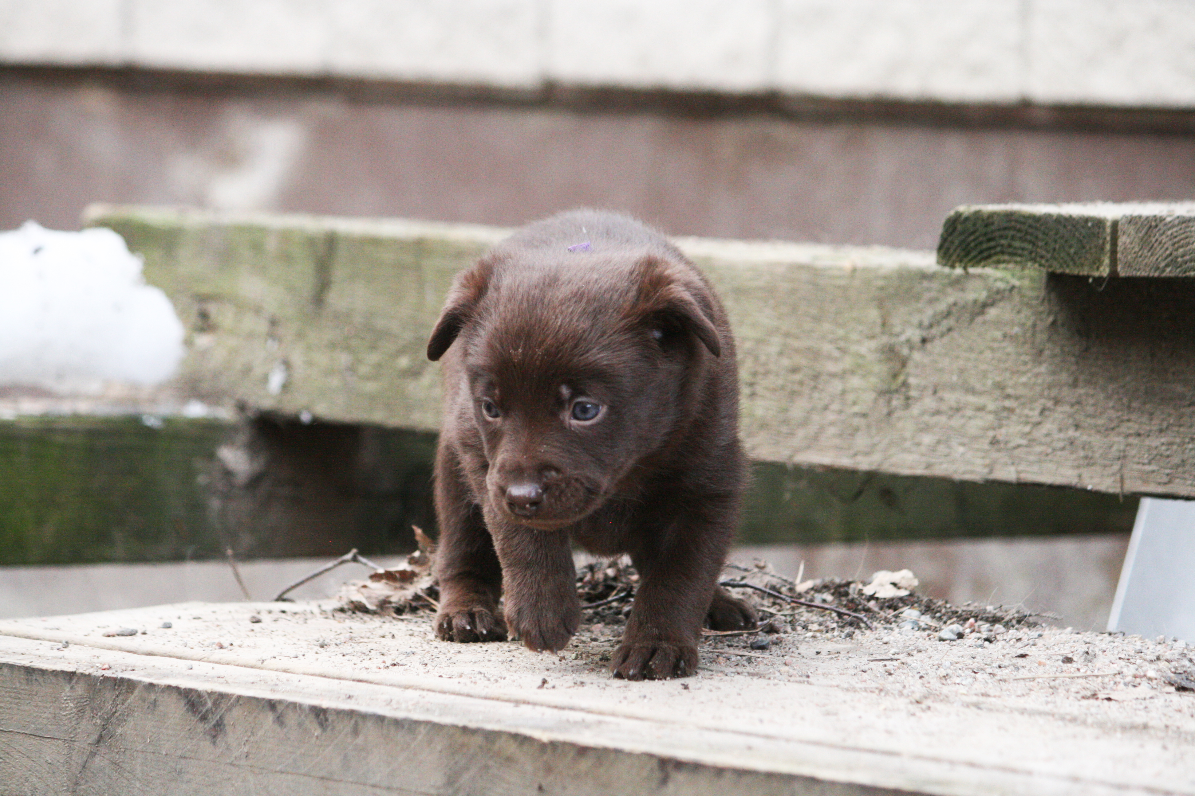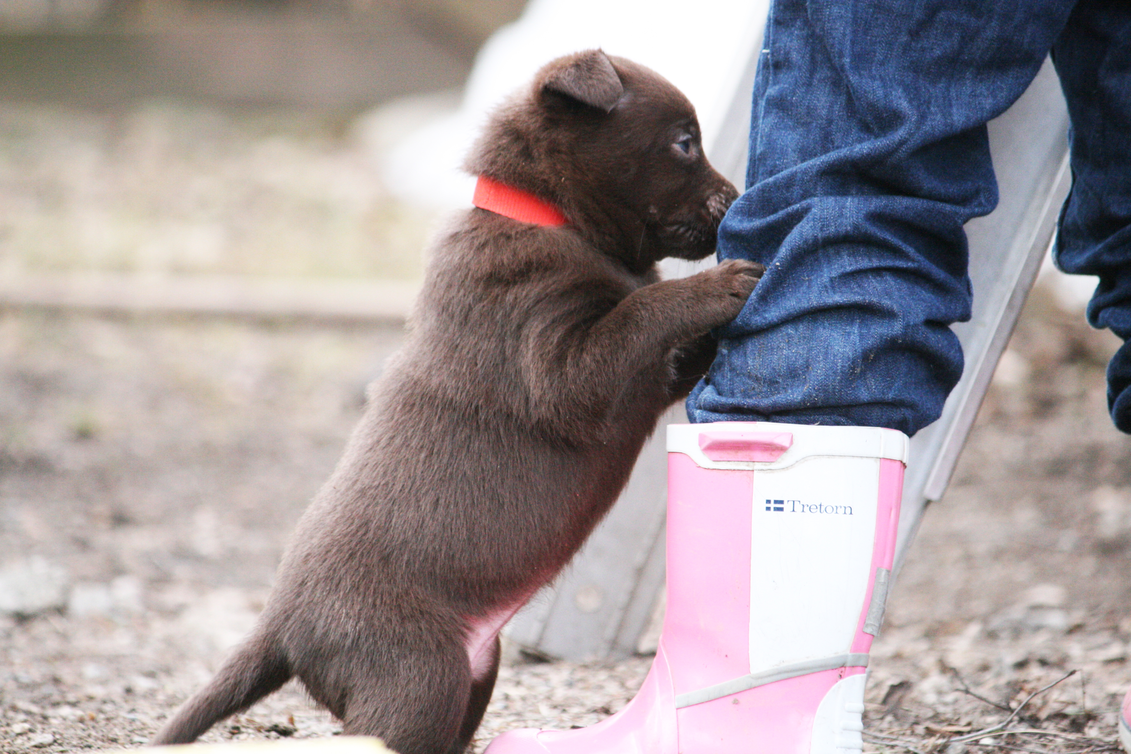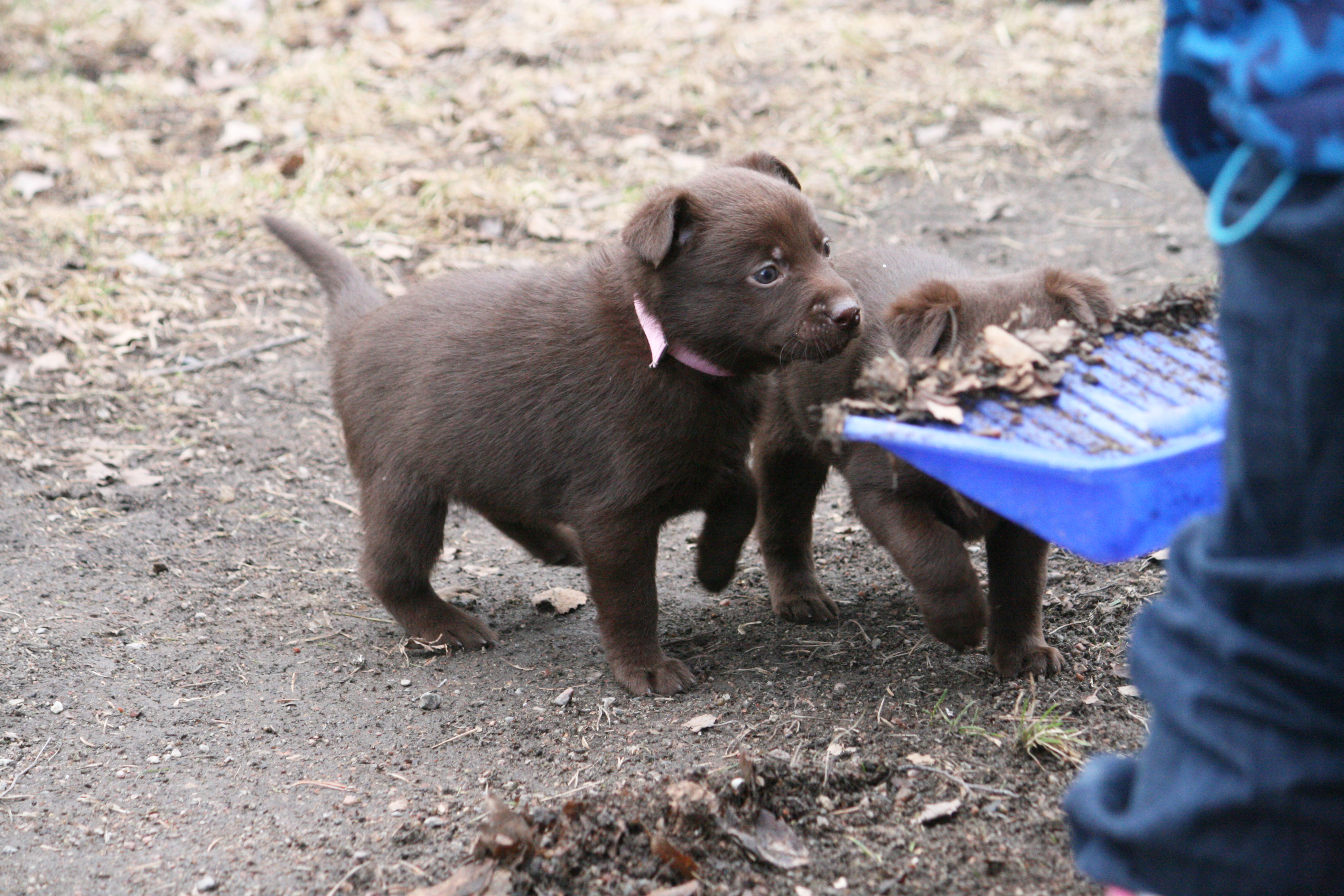 Hur fina får man vara egentligen? Lila hittade en pinne att busa med, Blå lärde kolla in mammans boll, Röd hittade ett byxben och Rosa hade koll på skottningen 🙂 Livliga och glada valpar som tar för sig.