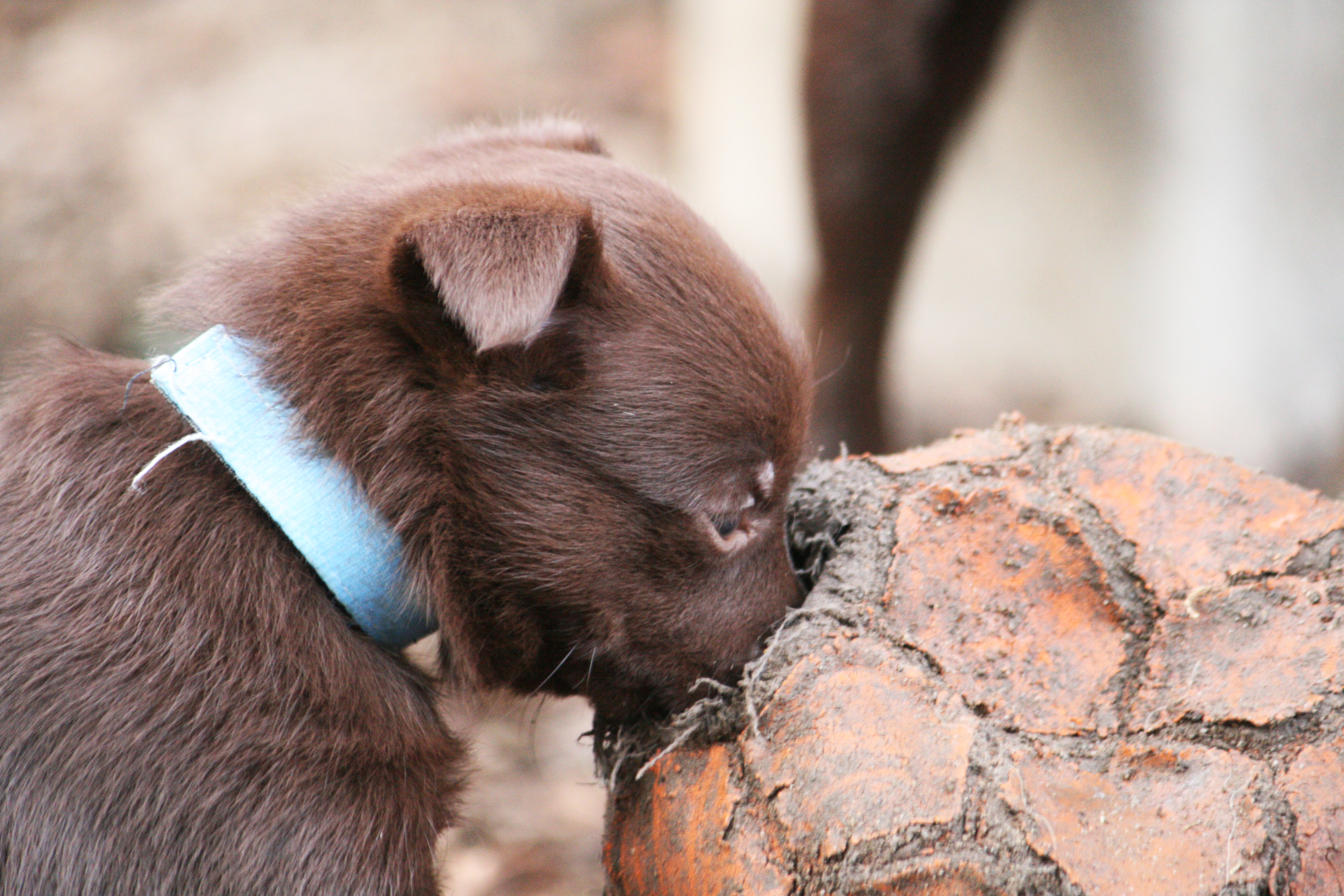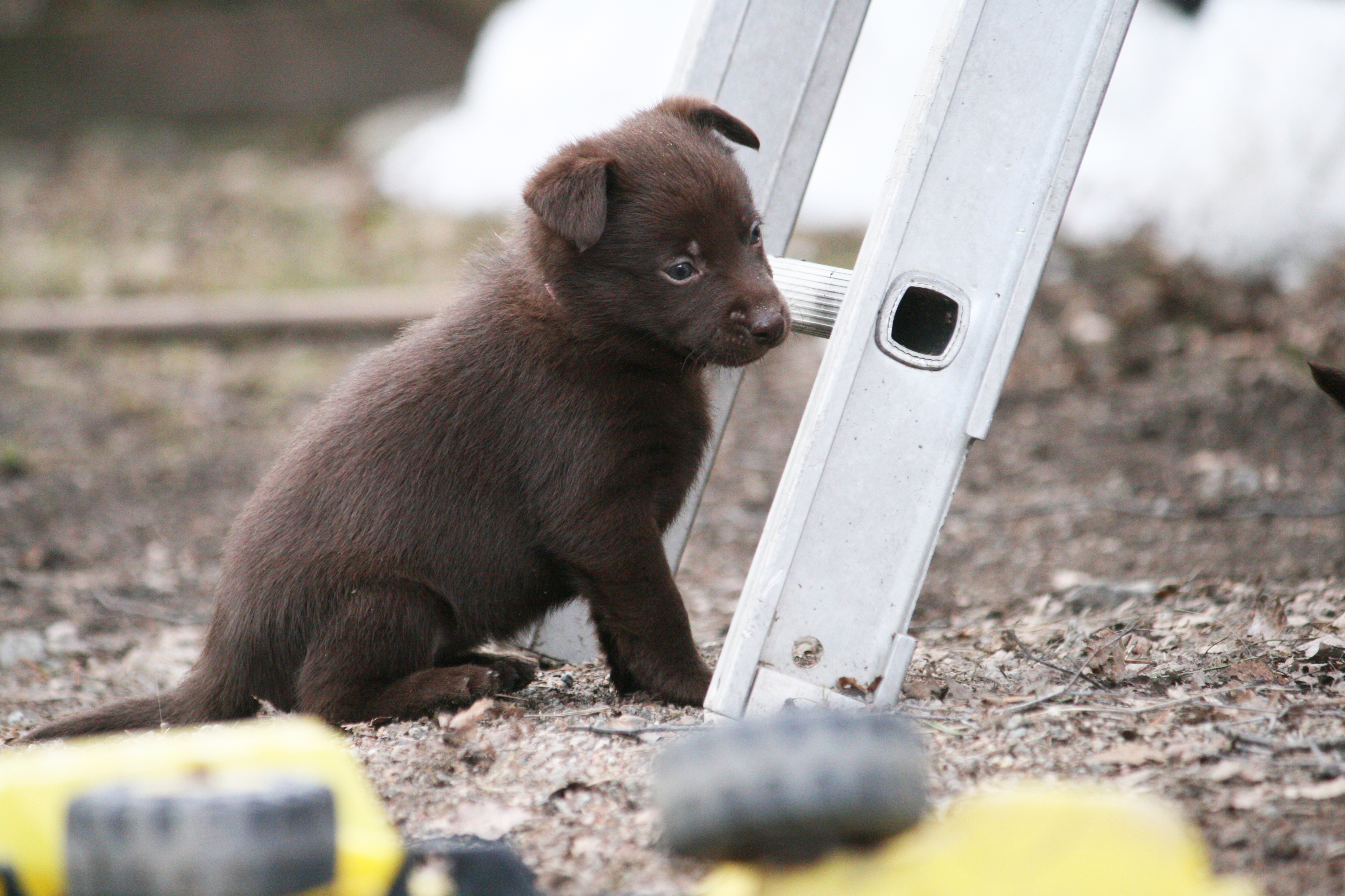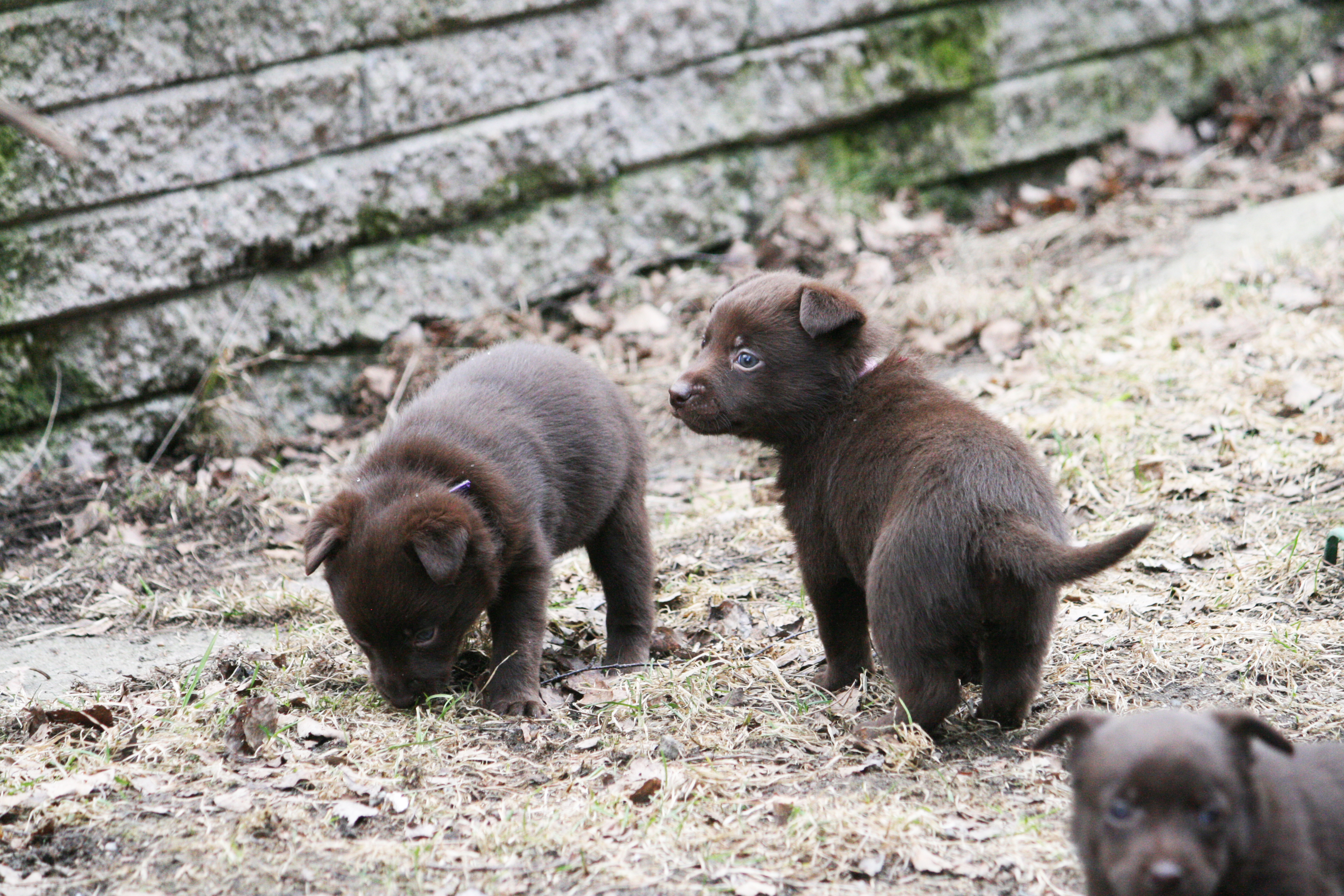 Hur fina får man vara egentligen? Lila hittade en pinne att busa med, Blå lärde kolla in mammans boll, Röd hittade ett byxben och Rosa hade koll på skottningen 🙂 Livliga och glada valpar som tar för sig.