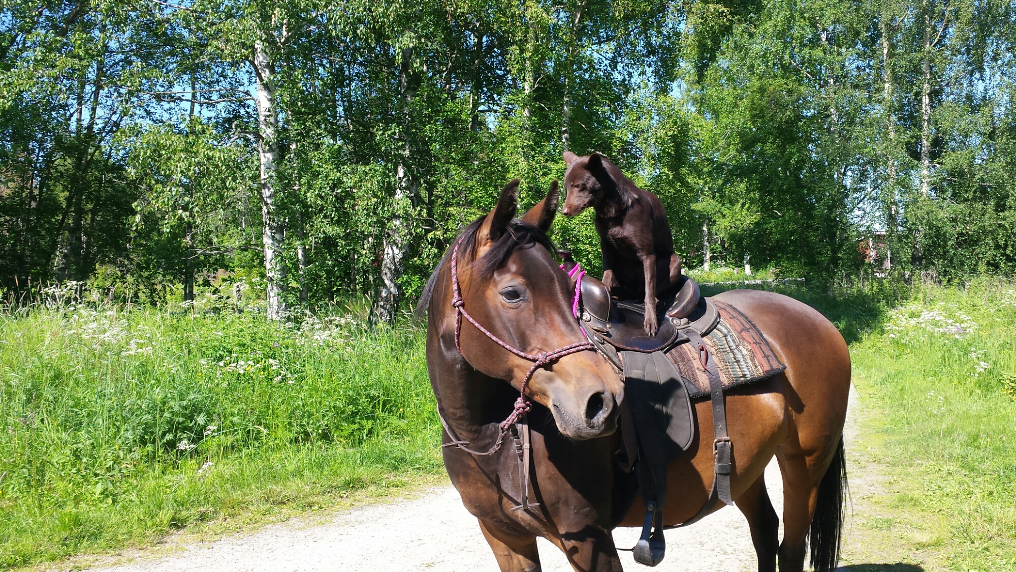 Igår blev det försten ridtur med Mira sen körde jag och Love Vera och hade Kalle med på släp.