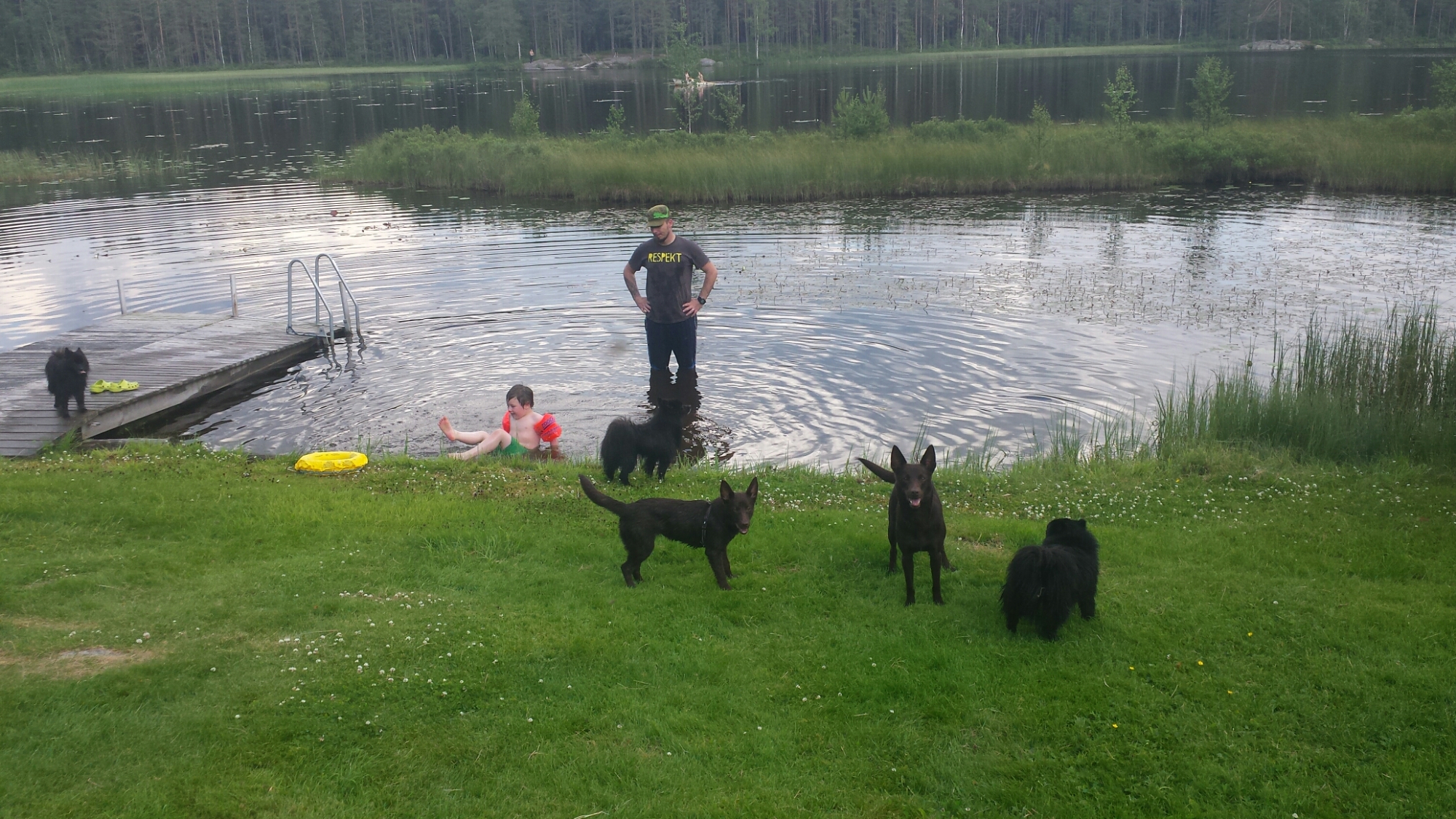 Nu är man hemma, nyduschad och nöjd efter en varm helg i Fagersta. Vi stog med husvagnen hemma hos Gittan och Sigge som bor så otroligt fint vid vattnet. Love tränade på att simma och stänka ner pappan. Hundarna njöt för fullt av att bada (ja inte badkrukan Gimli då..)