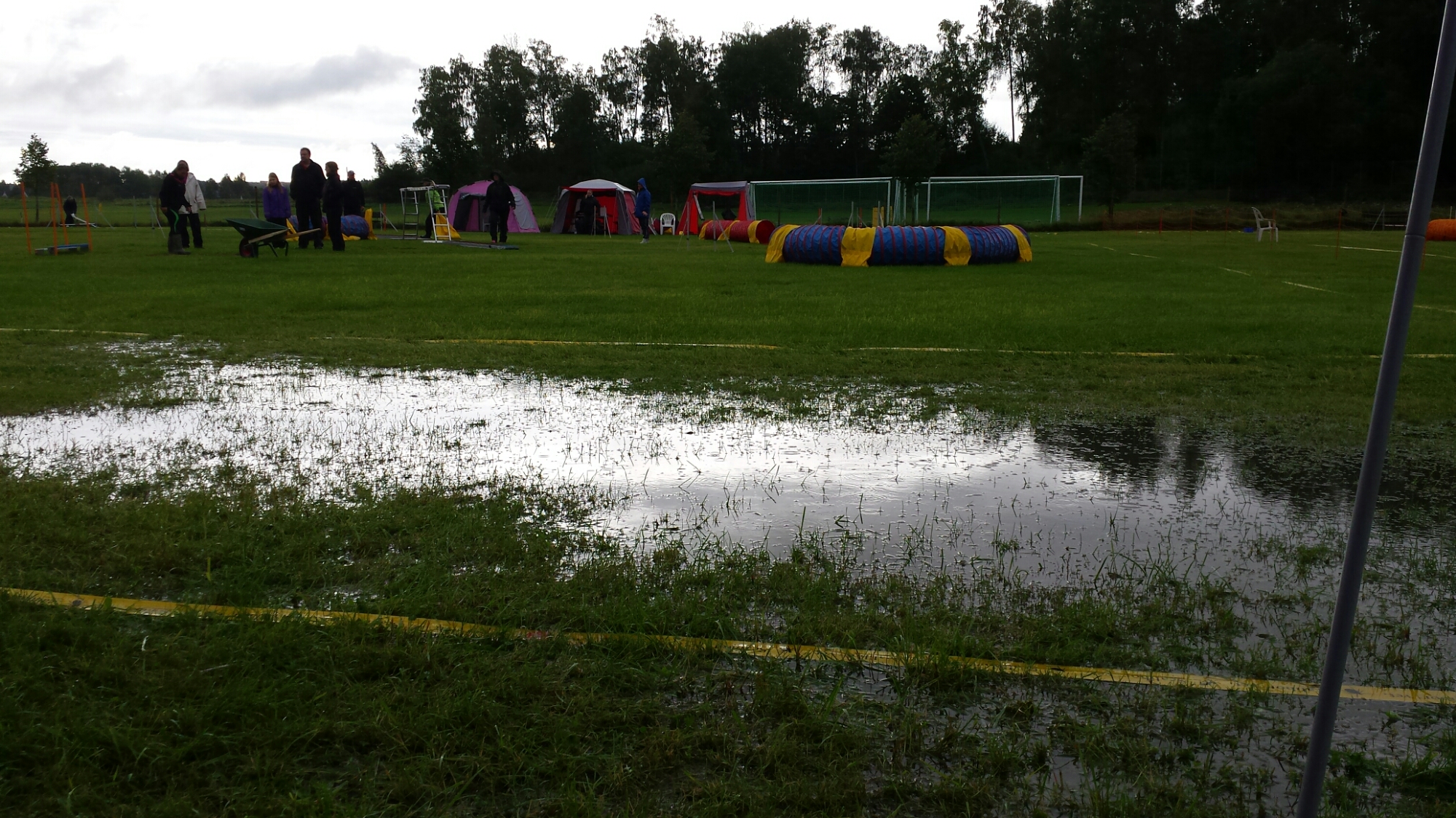 Söndagen bjöd på ihållande regn! Arrangörerna fick flytta på 2 banor så vi skulle kunna springa.