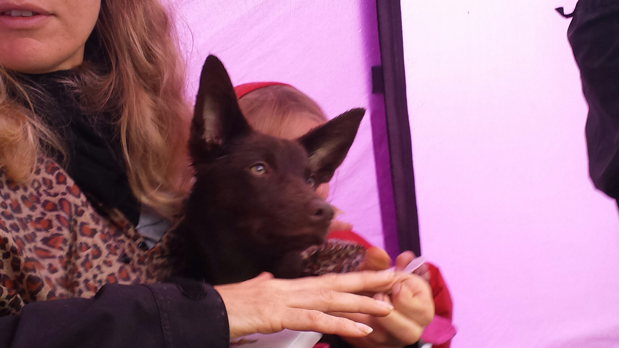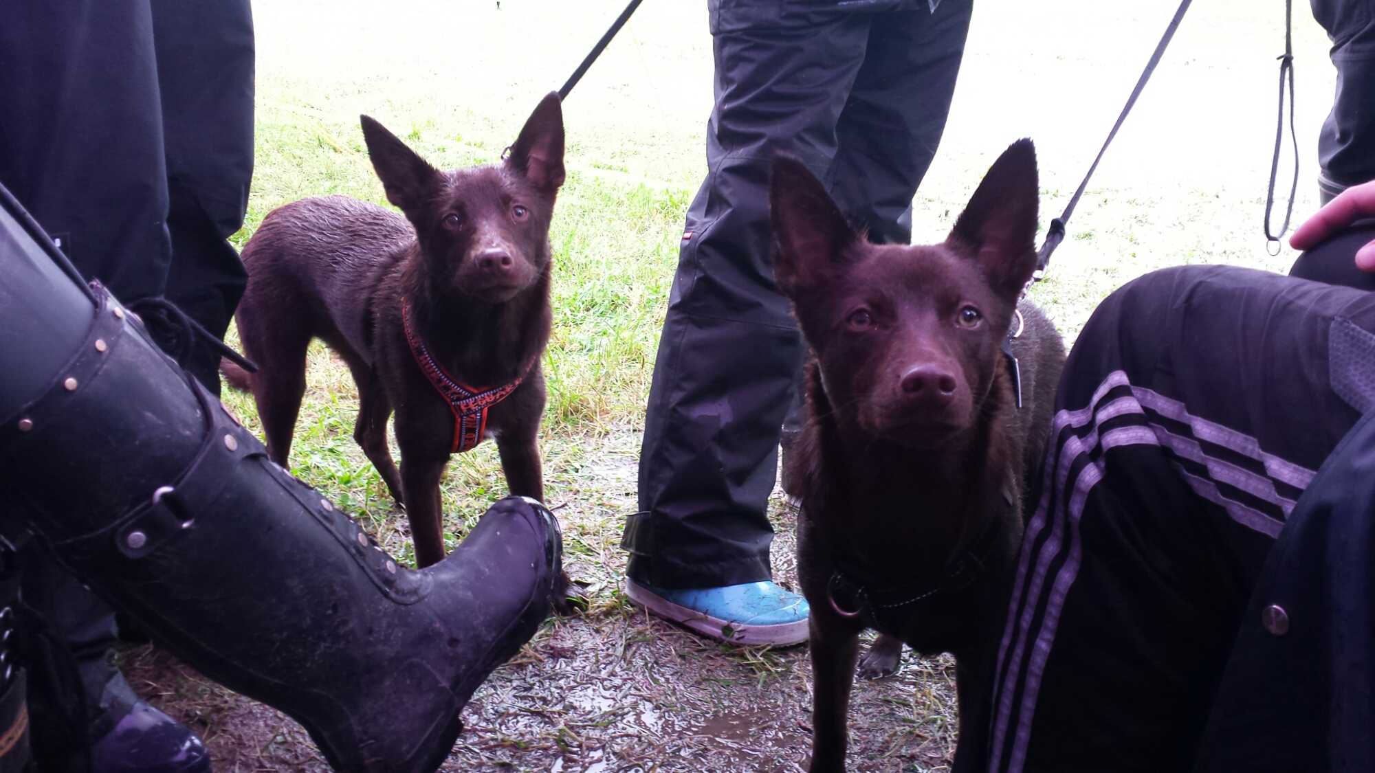 Liljas valpar (Kiras kullsystrar) trotsade vädret (eller ja deras mattar) och kom och agerade hejarklack till mamsen!