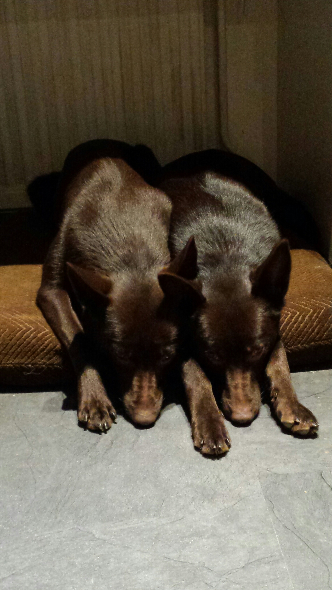 Dom är nästan lika som bär utseendemässigt. Kira är ett par cm lägre och har mörkare päls och är tunnare i kroppen. 10 månader är hon och systrarna fyllda nu!