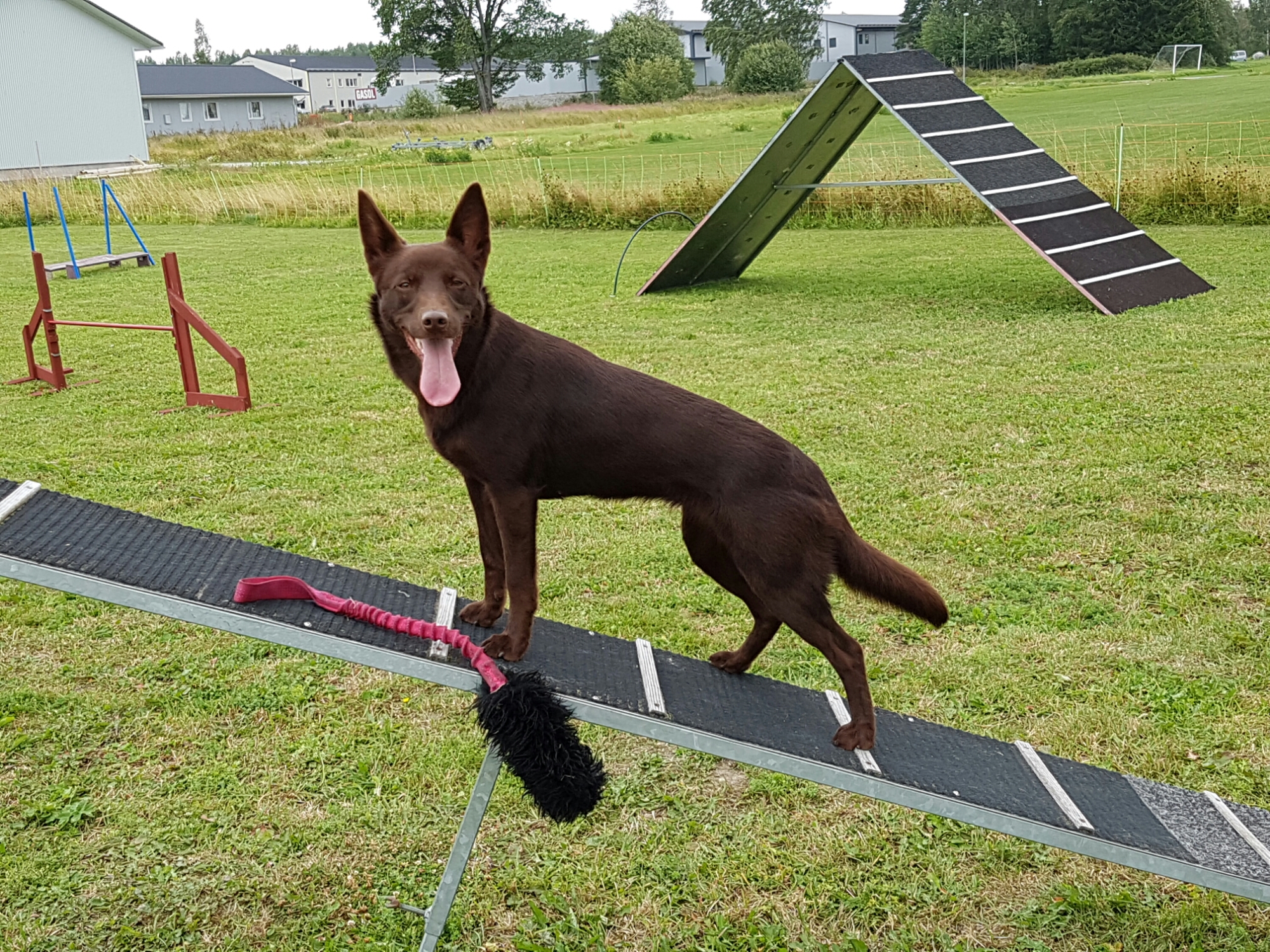 Byggde upp en 20 hinders bana med alla balanshinder och hindren på 50cm. Som Lilja, Kira och Caliber fick springa. Kira är den jag kör på filmen, trött i benen efter att ha sprungit den 4-5 ggr. Slarvade vid gungan annars handlade jag henne ok.