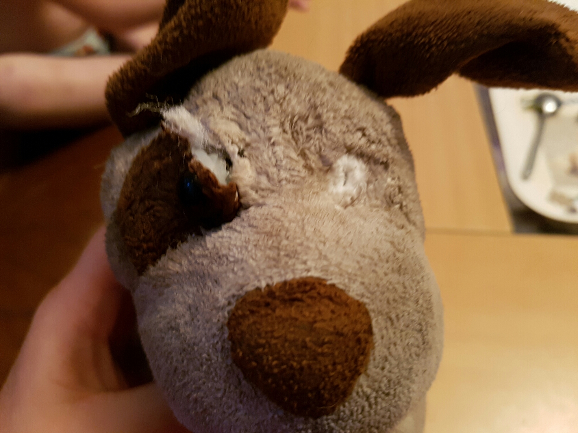 Jag fann honom smutsig, blöt och med hål i. Liggandes helt ensam ute på baksidan. Ena ögat brutalt borta och det andra ögat med ett stort sår vid sidan, ena tassen uppfläkt. Jag gjorde det enda man kan göra i en sån situation. Fram med nål och tråd! Att hitta den skyldiga var nu inte viktigt!! Nu handlade det om att rädda det som räddas kan!