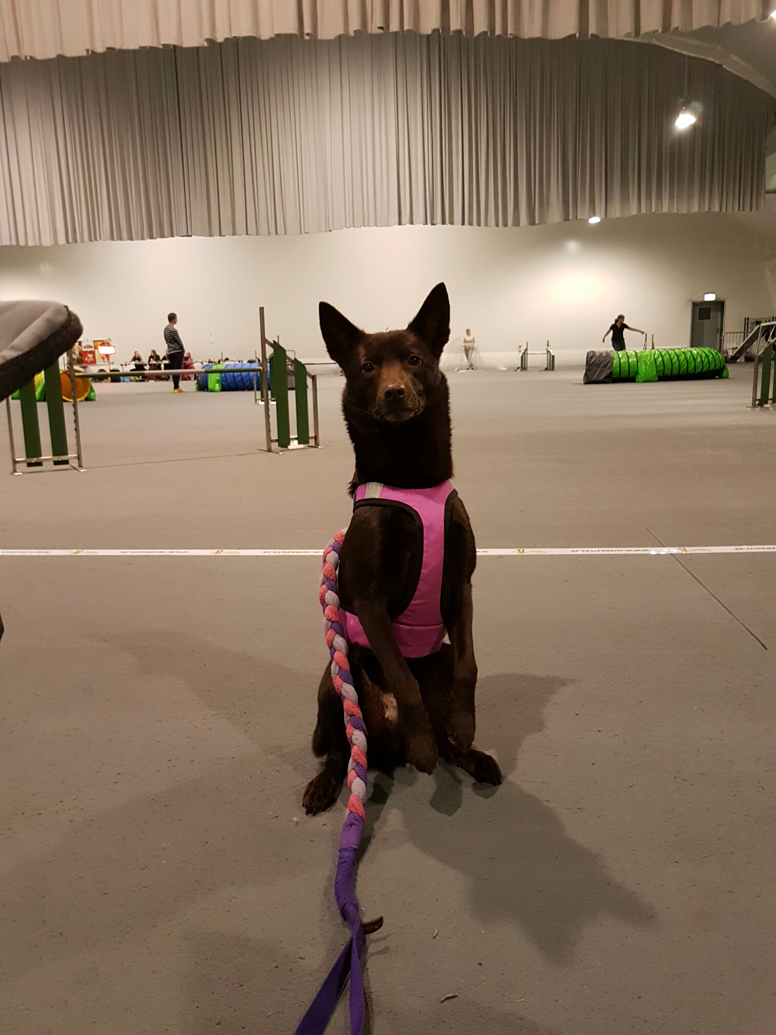 Har tyvärr även fått lite kommentarer från folk om hur jag tror Lilja ska klara konkurrensen i large. Riktigt tråkigt för andra har väl egentligen ingenting med våran tävlan eller karriär att göra. Så inför Liljas första lopp hade jag ont i magen och var inte sugen på att tävla. Blev stressat efter banvandringen att hinna hämta henne i bilen innan loppet. Hann precis in i hallen, ta av henne täcket och rusa till starten. Var nog bra så jag inte hann tänka så mycket. Körde offensivt och med mycket röst precis som jag ska köra för att ge allt fullt ut. Fick många positiva kommentarer, och när hela klassen var klar så visade det sig dessutom att vi vunnit klassen!! Våran debut i large, så otroligt skönt! Att även få dela glädjen med Åsa som kom på andra plats med Cefeus Jackaroo som då även blev agilitychampion var underbart!