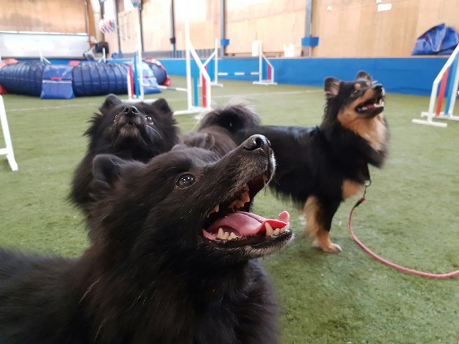Riktigt glada hundar och förare idag som agilierat 2 timmar i Kilafors hundhall! Var mer än 3 veckor sedan som vi tränade senast. Ringrostiga helt klart men vad gör väl det 😄