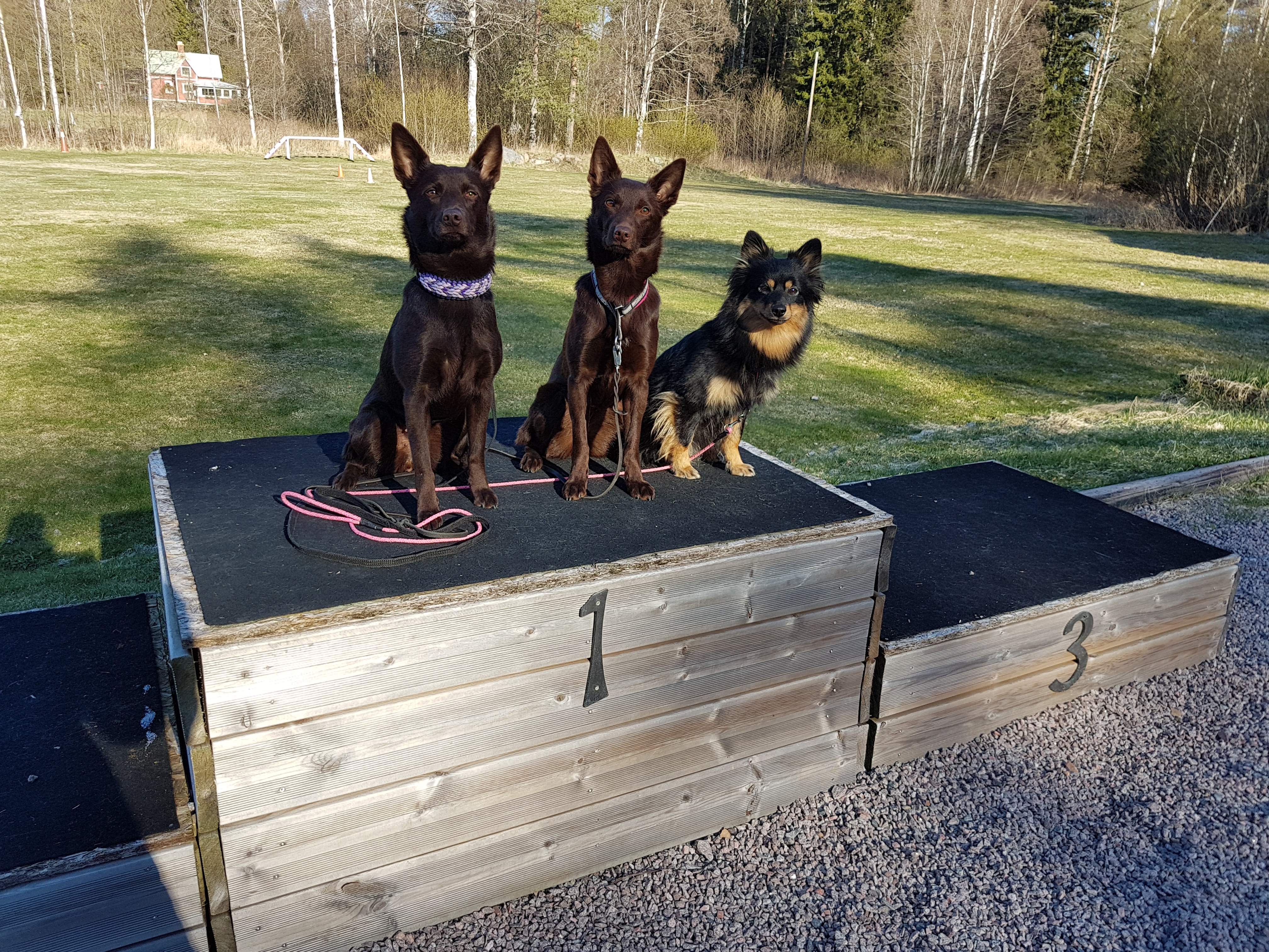 Kira, Celpie och Tesla tränar på att posera överst på pallen 💖