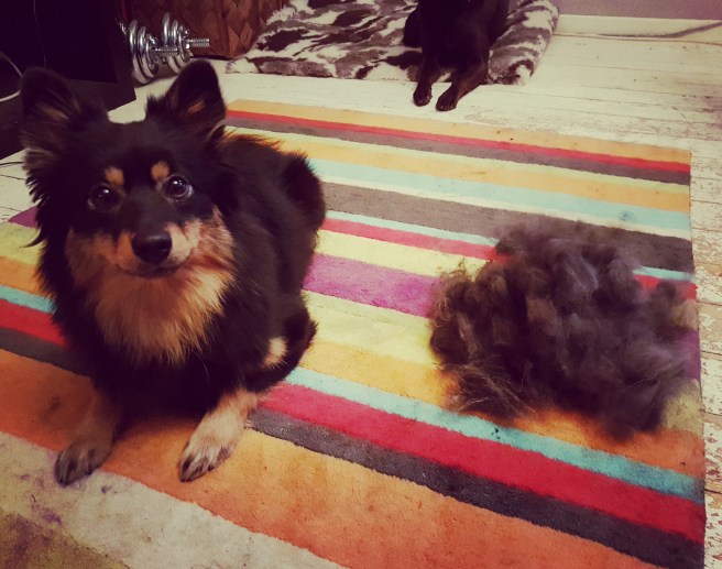 Tesla löper och fäller ur som bara den, inte mycket päls kvar på den kroppen nu inte. De andra spetsarna fäller också, men dom har desto mer att ta av.
