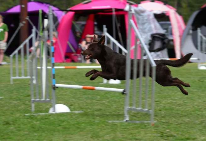 Tesla är i höglöp så väldigt virrig… men vi lyckades ändå ta en pinne i hopp! Och de träffar hon fick på balansen var fina.