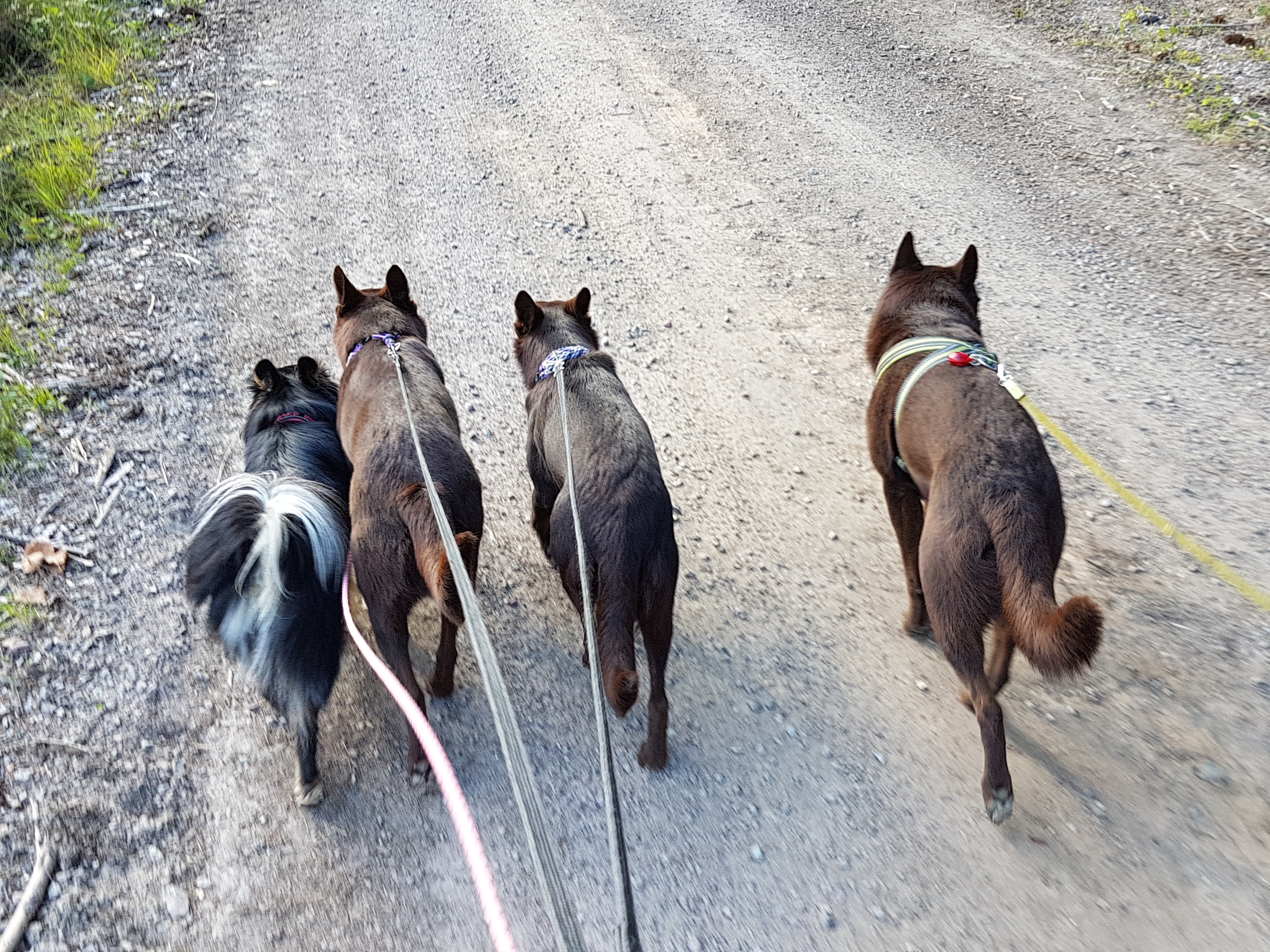 Tesla, Lilja, Kira och Jackson 🙂 på promenad efter lördagens lopp