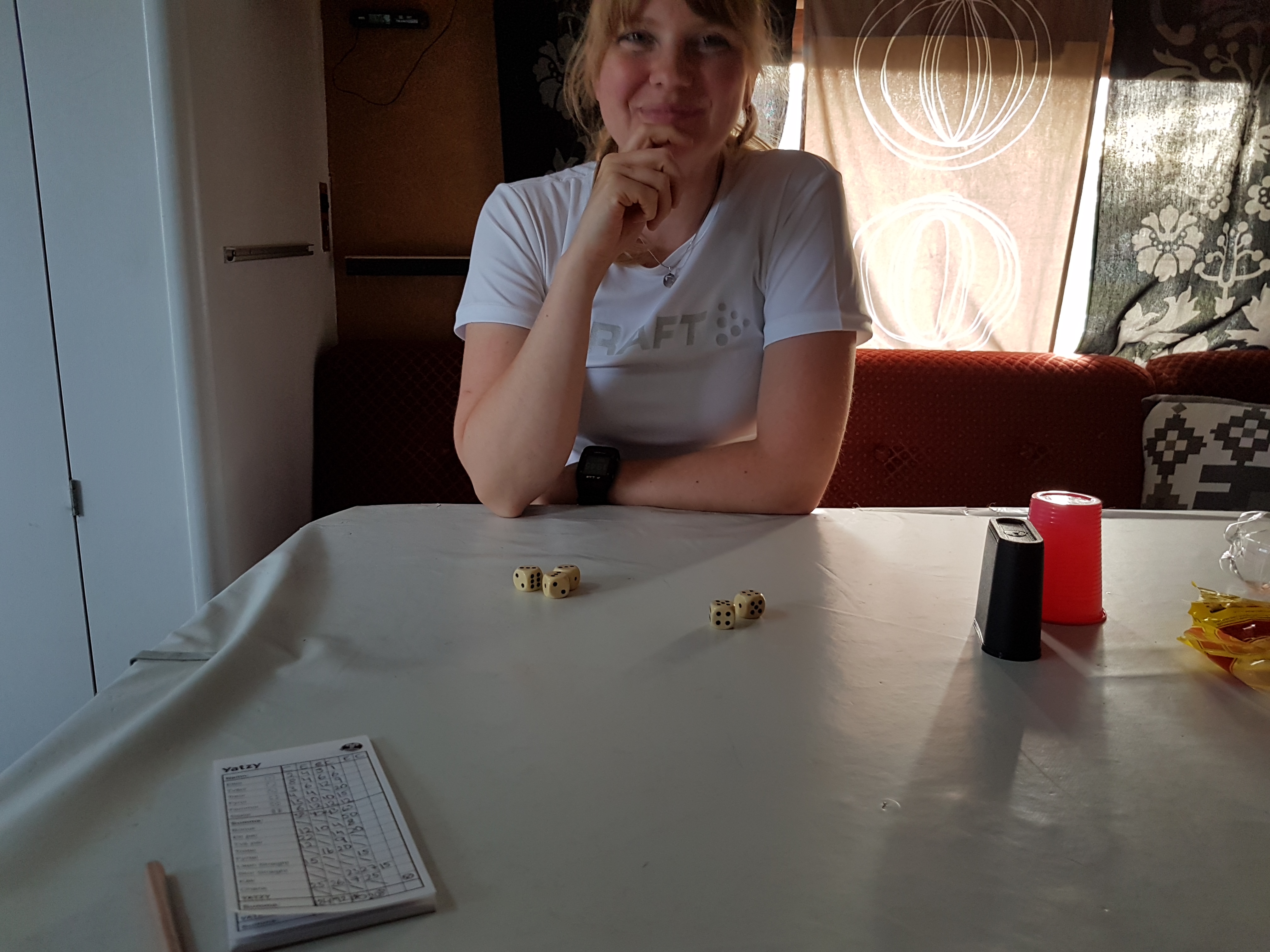 Jag och Evelyn spelade yatzy, ni kan ju få gissa vem som vann alla tre ronderna 😉