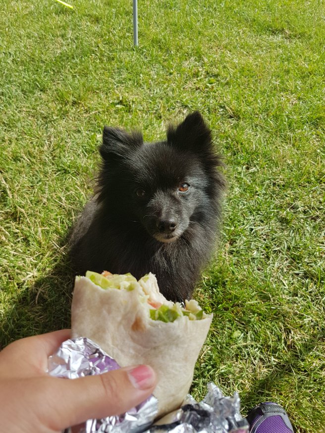Jinnie tävlade jag inte individuellt utan hon fick mingla och tigga mat (och få) istället