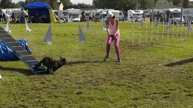 Kira missade runningen i agilityloppet så skickade om henne på nedfarten. I hopploppet gick hon ur i slalomen.