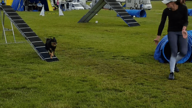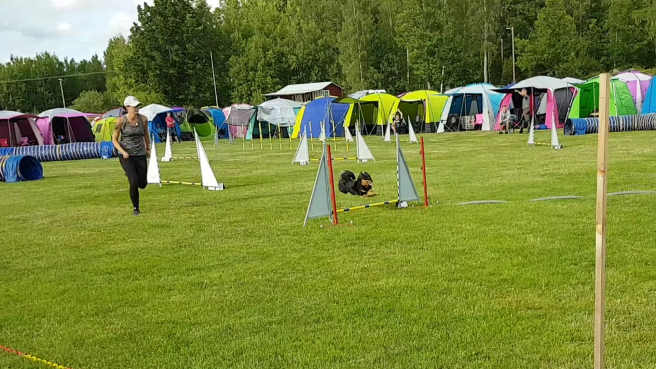 Lilja klantade jag mig på slutet i hopploppet tyvärr, blev riktigt besviken på mig själv. I agilityloppet var det många utmaningar, höll på att tappa henne över hopphindret före slalomen men vi redde ut det och tog en 2 plats.