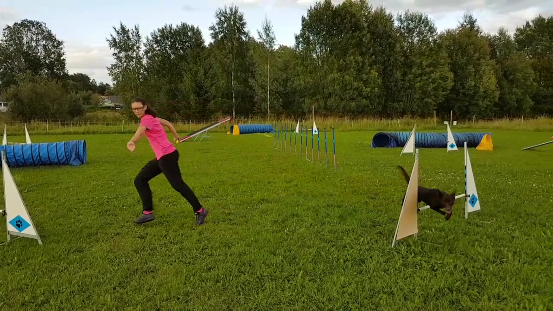Kira fuskade vid hinder 10 när jag blindbytte och sprang förbi det hindret. När jag var kvar på vänster sida efter hinder 10 hann jag inte blindbyta på henne efter A hindret för S sväng på hinder 12. Passade bäst att vara på höger sida och pusha henne till S svängen på hinder 12. Bra och stabila rc.