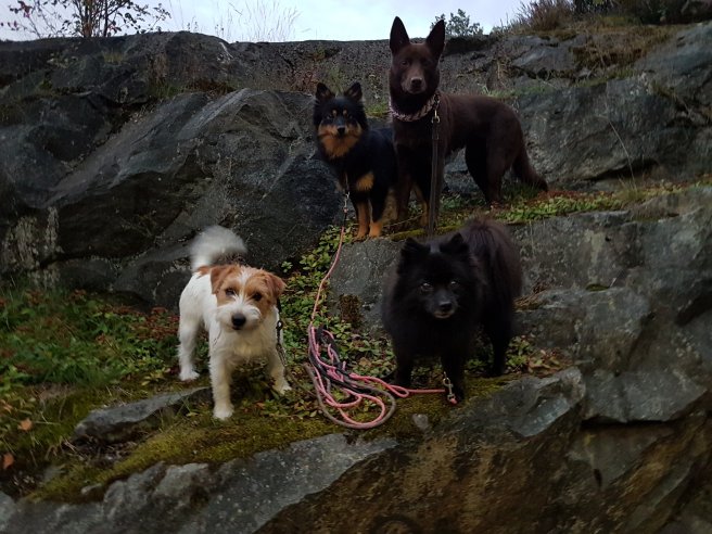 Lilja, Jinnie, Tesla och Lee när vi pausade på vägen ner.