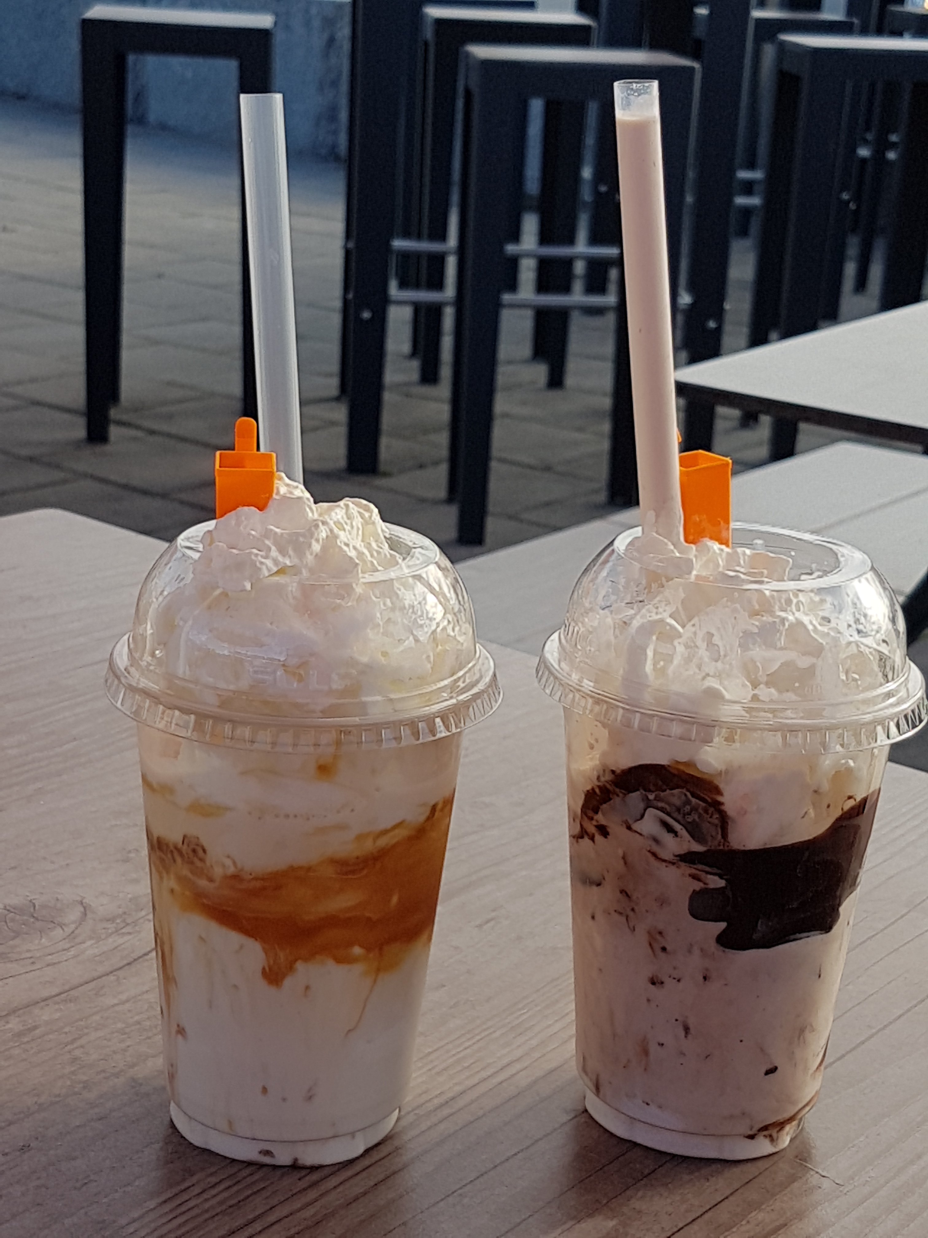 Jag och Jens firade helgens framgångar med varsin lyxshake på hemvägen