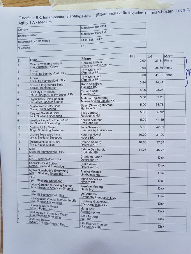 Vinst med en hel hundradel till tvåan, idag hade vi marginalen på vår sida 😉 hon är fortfarande lite tveksam ner på kontaktfältet men det tar sig!