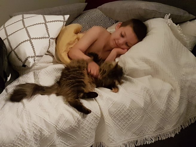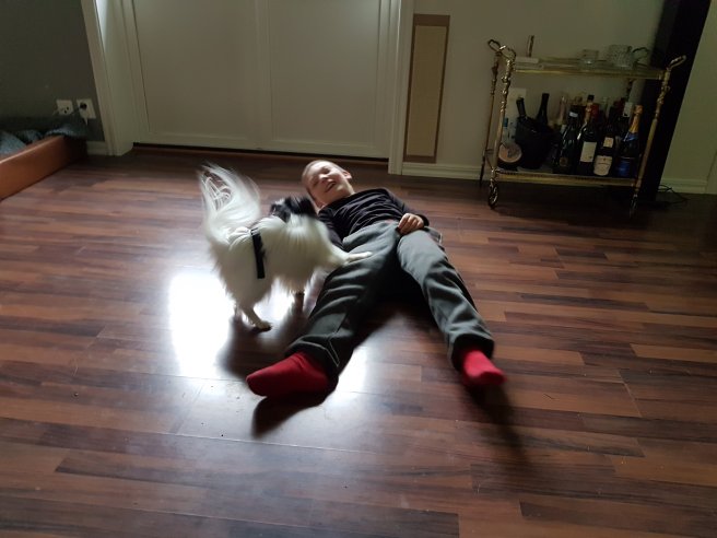 Vi har blivit bortskämda hemma hos Therese, där Lukas myste med katten Nona och lekte med lilla Clay.