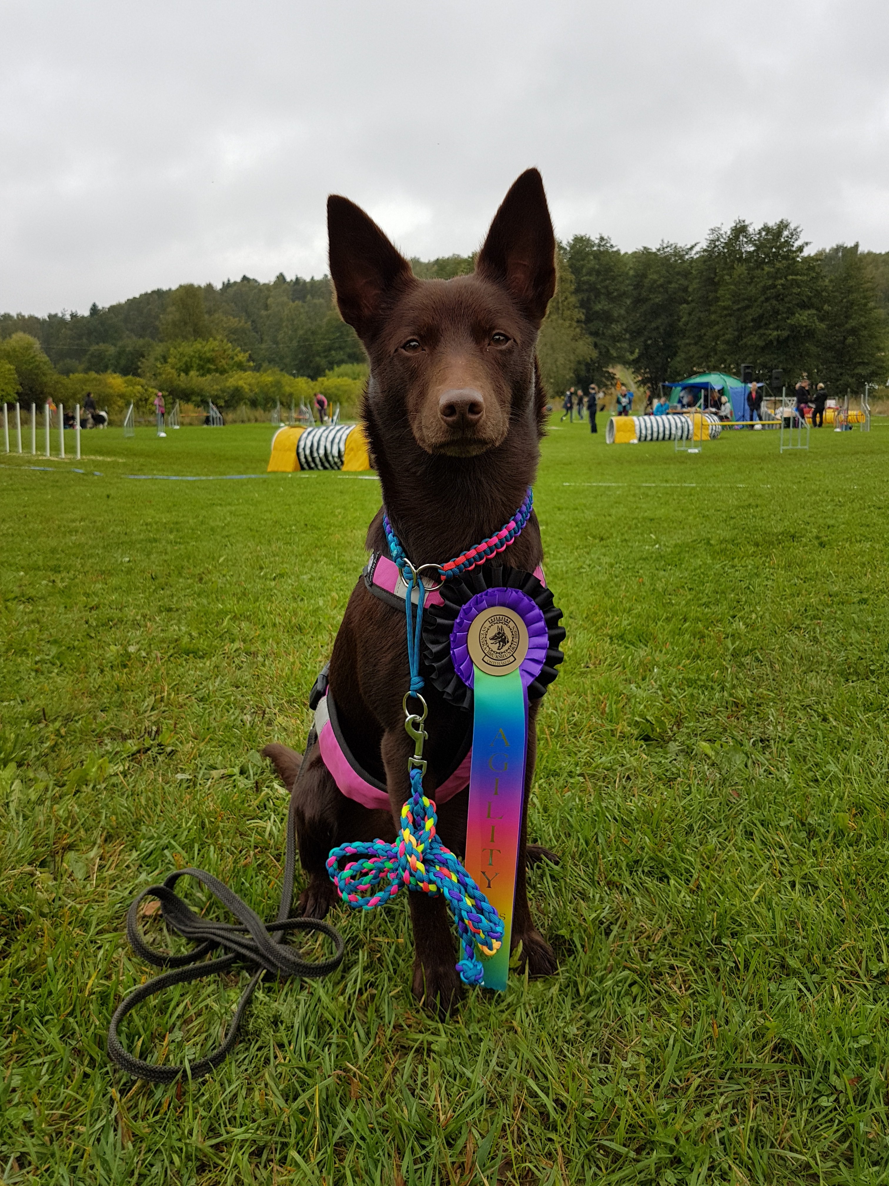 Kiras 2 lopp, jag är så otroligt glad över vinsten i agilityklassen så det är löjligt, en väldigt hög träff på balansen, men ändock en träff!