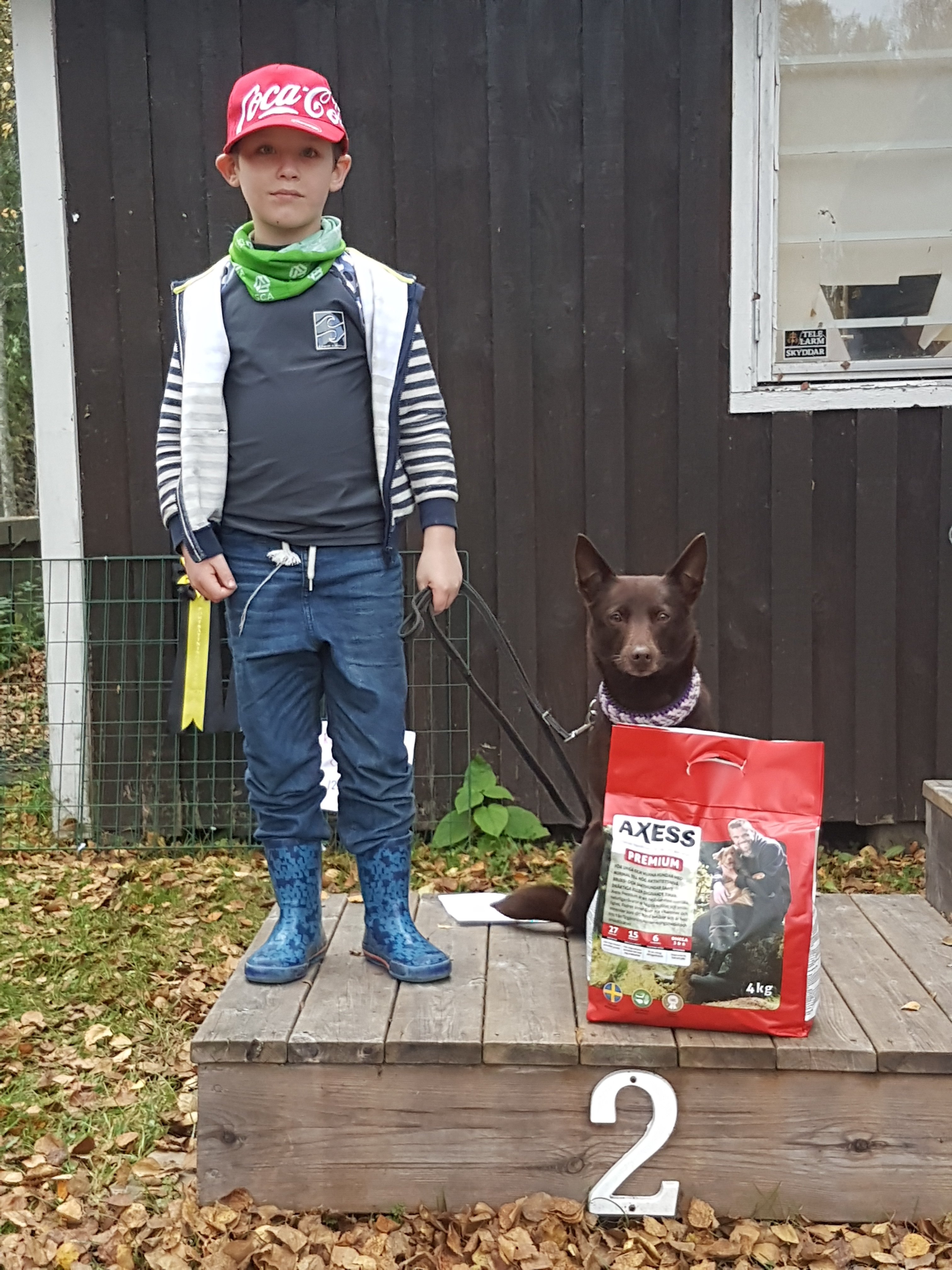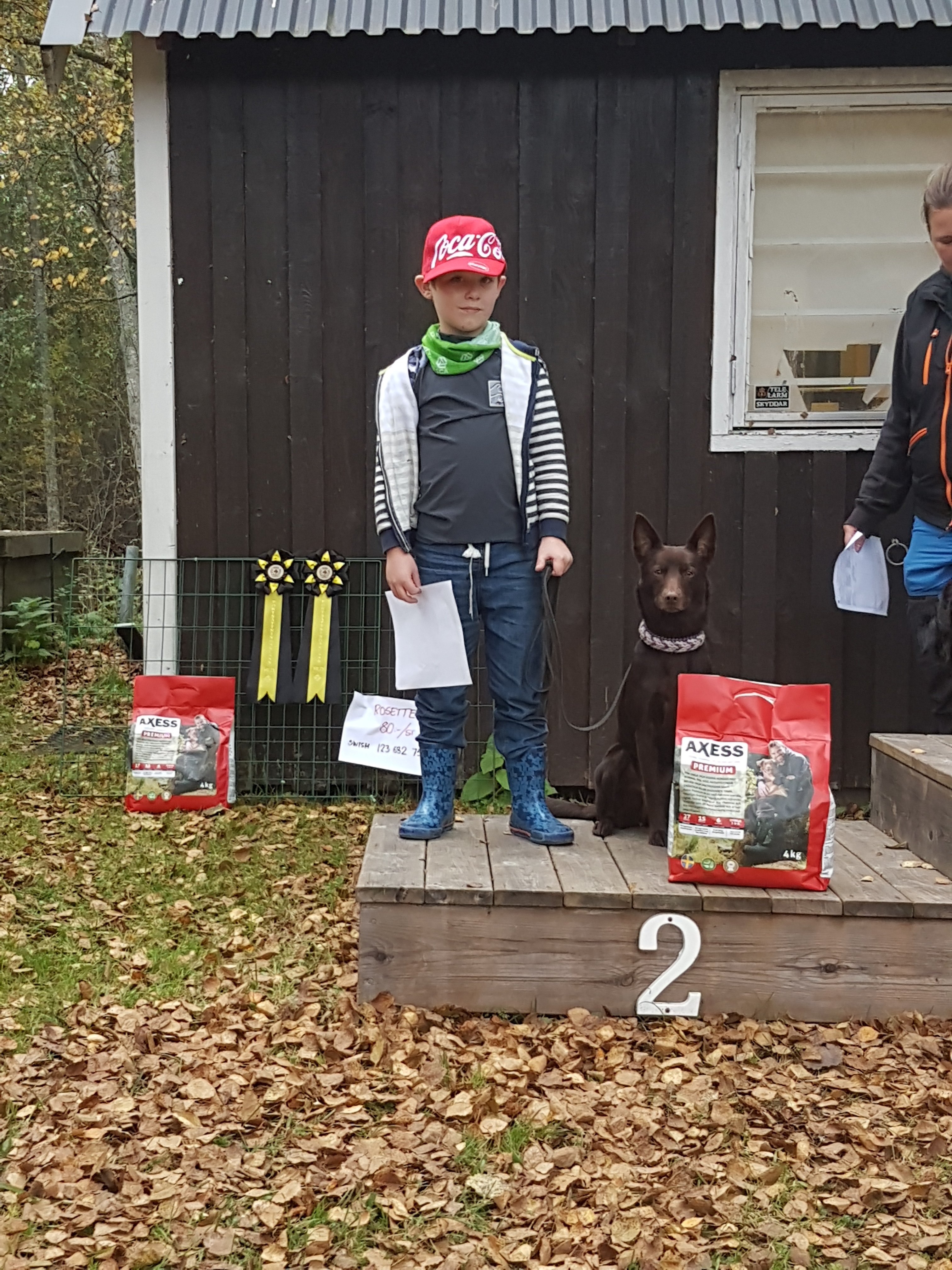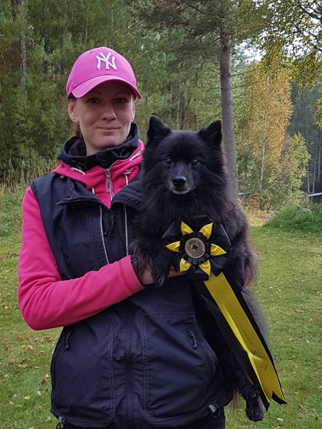 Med Kira fick vi 93 poäng i A klassen och skulle även fått 93 poäng i B klassen om jag inte klantat mig och startat henne på Liljas startnummer, Kiras resultat ströks därmed. Men hon var superduktig, inte hennes fel att matten klantade sig. Hon höll på att krypa ur skinnet då hon så gärna vill pussa på funktionärerna men hon höll sig 😉