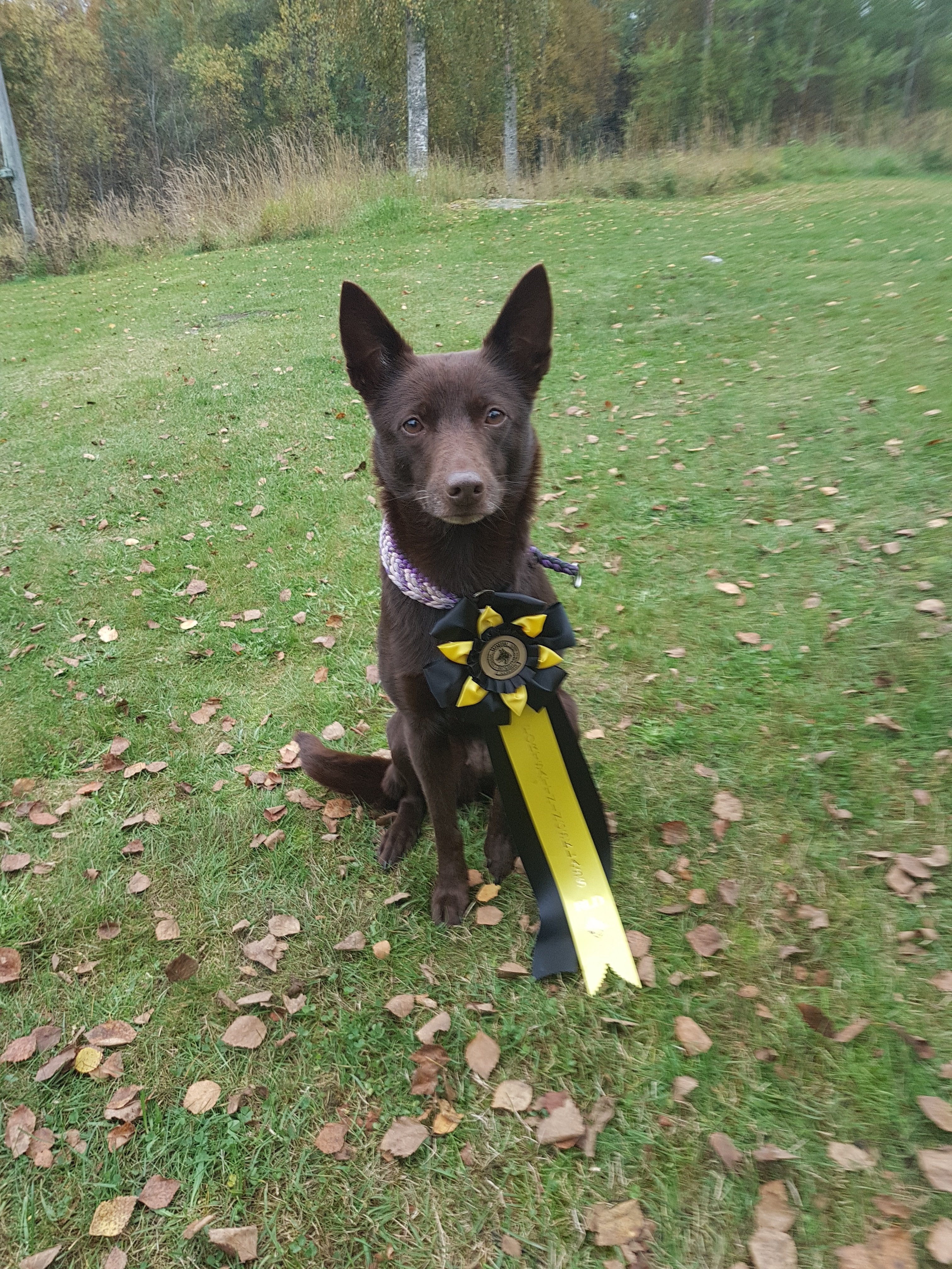 Lilja fick 91 och 89 poäng på sina rundor. Och då hon har ett godkänt resultat sedan tidigare fick hon titeln RLD F 🙂 på 89 poängs rundan så satt hon inte kvar i ‘sitt, lämna hunden ta ett steg åt höger kalla in’ så där fick vi minus 10.