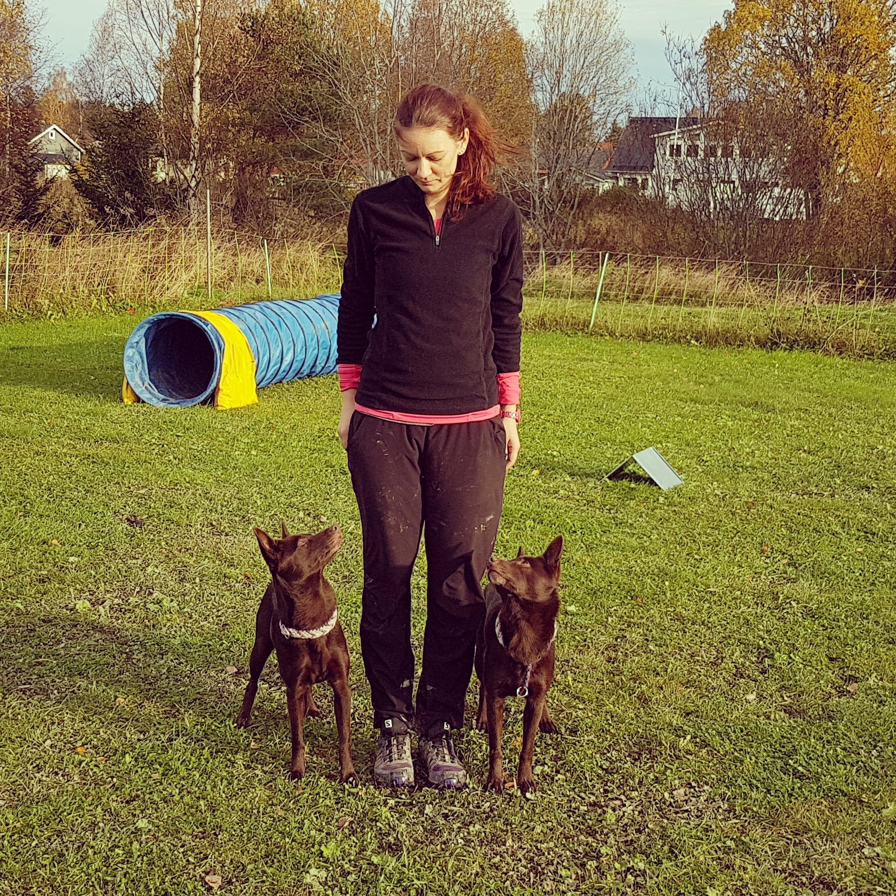 Och så byggde jag upp en 25 hindersbana som vi jobbade på. Fick åter tillbaka en del av självförtroendet som fick sig en törn efter lördagens tävling. Fick även äran att springa med Annas superpudel Aila 🙂
