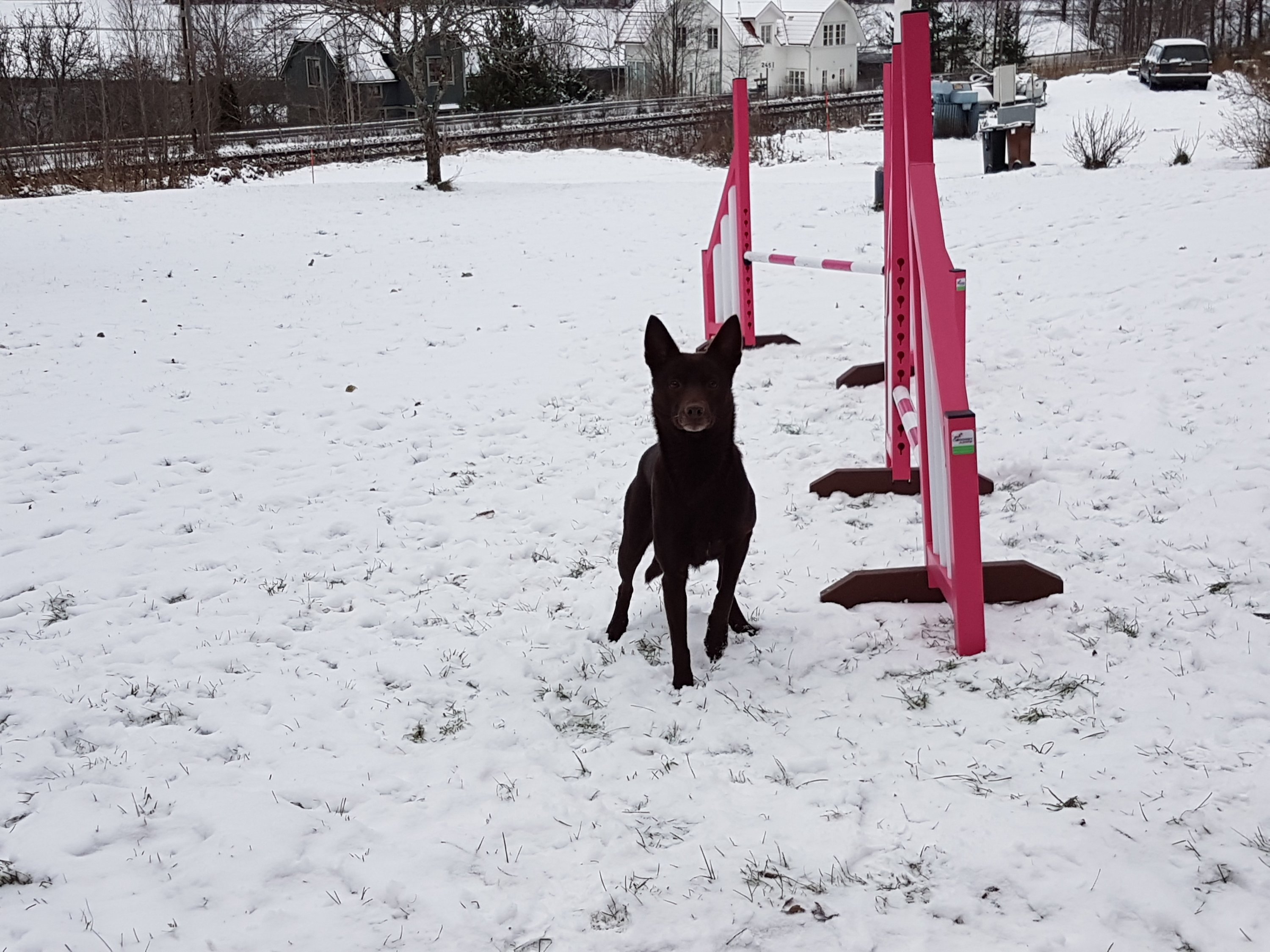 Tesla var som snabbast 2.59 sekunder idag på träning och som långsammast 2.91. Och igår på tävling var det 3.67 sekunder på ena loppet igår. Hon vill ha mig nära och peppandes för att springa som fortast.