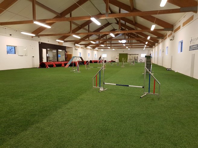 Vi byggde upp en agilitybana på 22 hinder, med balans, oxer och gunga.