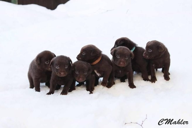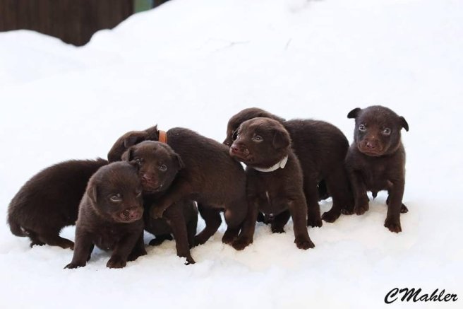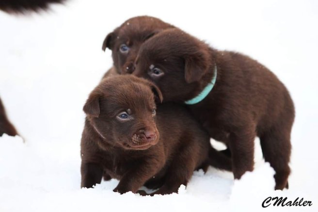 Idag har valparna fått känt på snö för första gången i sina liv.