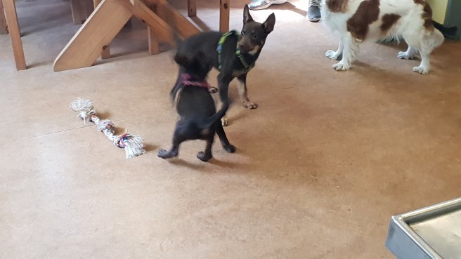 Har en del saker att träna på med hundarna, hoppas på mildare väder då min hjärna inte alls orkade med i helgen. Snygg tejpbränna på knät och benet fick jag med.